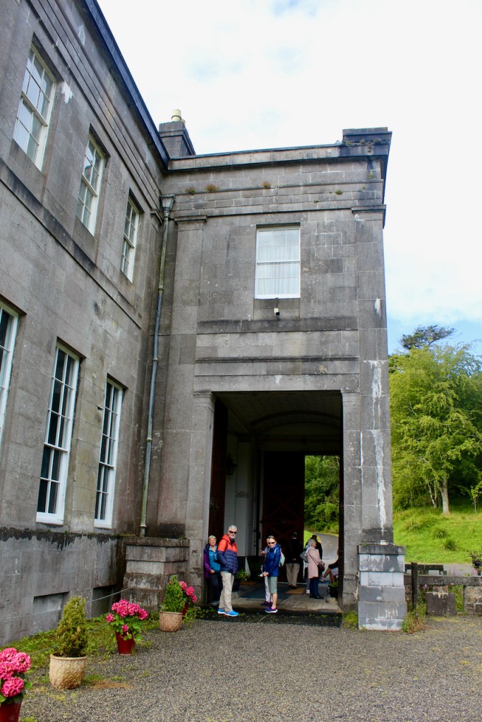 The entrance front (north) elevation has a three-bay pedimented central projection flanked by three-bay side sections. When one approaches on the path one can see that the lower storey is open to the east and west to form a porte-cochere. The house was described by Maurice Craig as being ‘…distinguished more by its solidity than by its suavity and more by its literary associations than by either.’ I find the crafted stone and the massive squareness of it beautiful.