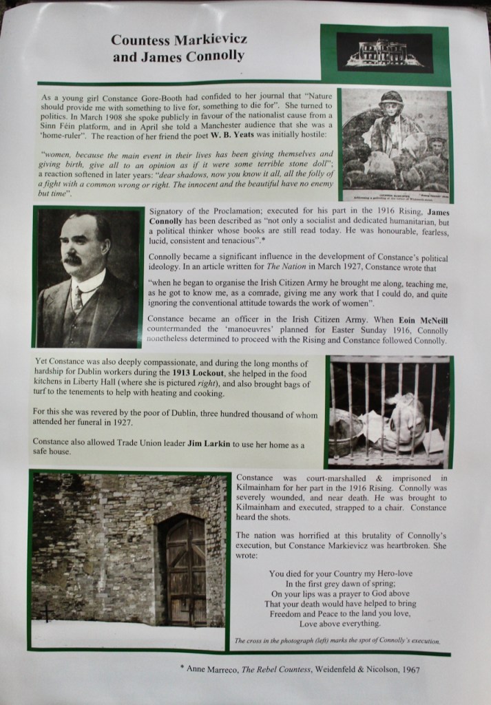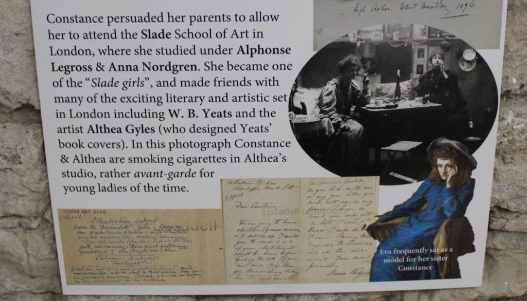 Constance went to art school in the Slade School of Art in London 1892-1894. She lived in Cheyne Walk, Chelsea, where many of London’s bohemians and writers gathered: George Eliot had lived there, Whistler, Henry James and Erskine Childers. At the age of 25 went to Paris to continue her studies, and met and married a fellow artist, the Polish Casimir Markievicz. Many of Constance’s paintings still hang on the walls, as well as some work by Casimir. Their only child, Maeve Allys, was born in Lissadell in 1901.