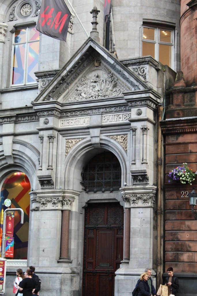 William George Murray joined the architectural firm of his father, William Murray. William George Murray, the Dictionary of Irish Architects tells us, was architect to the Dundalk, Enniskillen & Londonderry Railway Company, for whom he built the railway station in Enniskillen, Fermanagh as well as many others. He was also architect to the South Dublin Union. [3] Thomas Drew was also an architect in the same firm, and he worked with Murray on the original building for the Union Bank. The Union Bank failed after just six months, and the building was bought by the Hibernian Bank.
