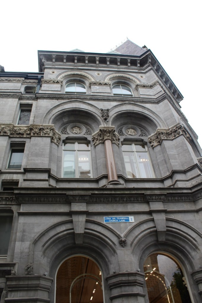 The National Inventory tells us it is: “Freestanding former Church of Ireland church, built 1700-4… Now in use as bar and restaurant, with recent glazed stair tower built to northeast, linked with recent elevated glazed walkway to restaurant at upper level within church… Saint Mary’s (former) Church of Ireland was begun c.1700 to the design of Sir William Robinson and was completed by his successor, Thomas Burgh.” [18]