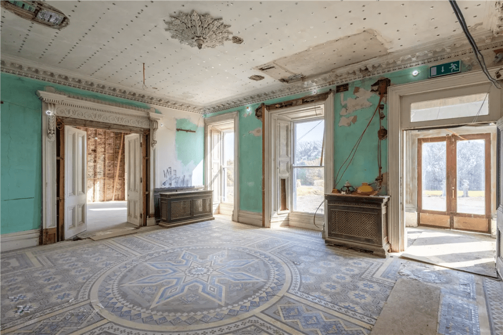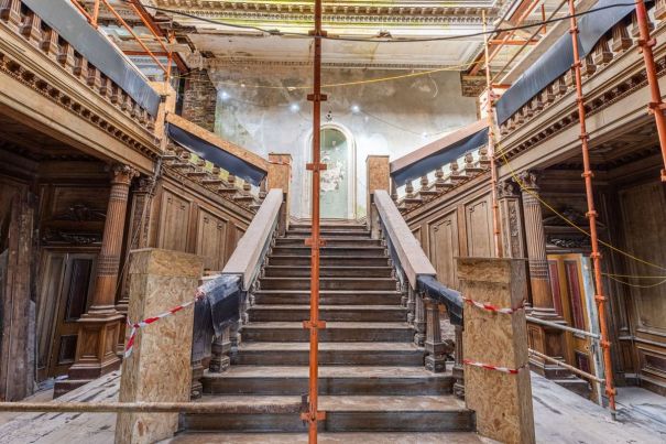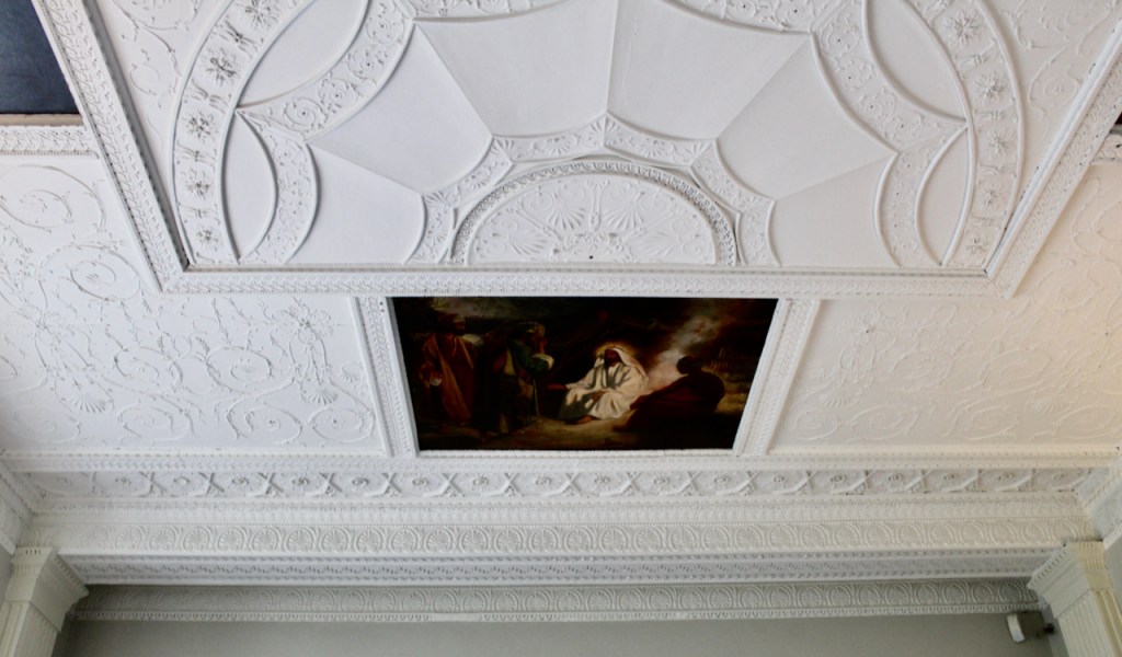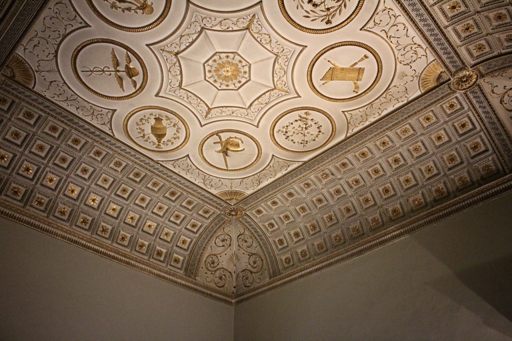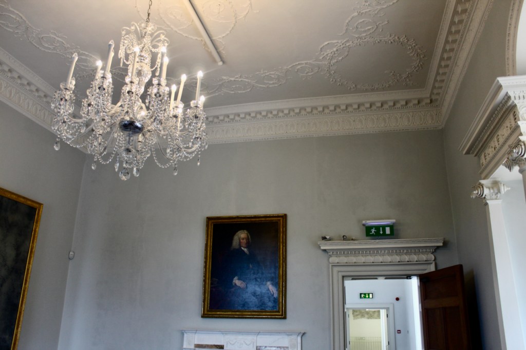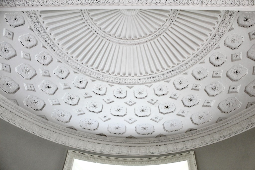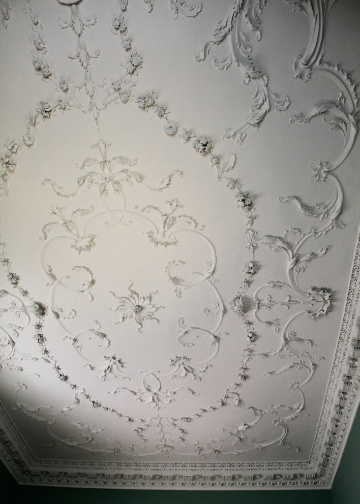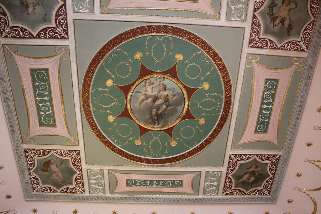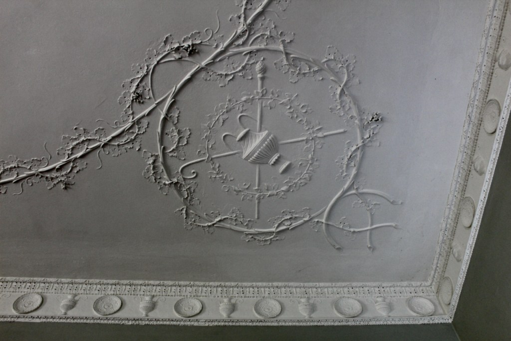 As well as the ante room and ballroom and the entrance hall on the first floor, Chambers was responsible for the small drawing room ceiling, back staircase lobby, and the octagonal room in one of the towers.