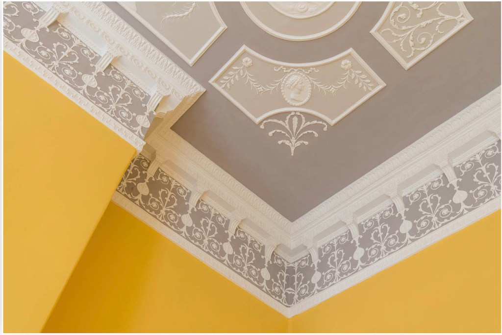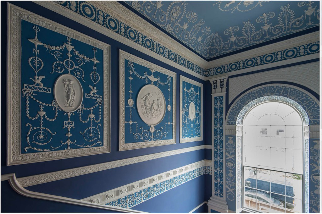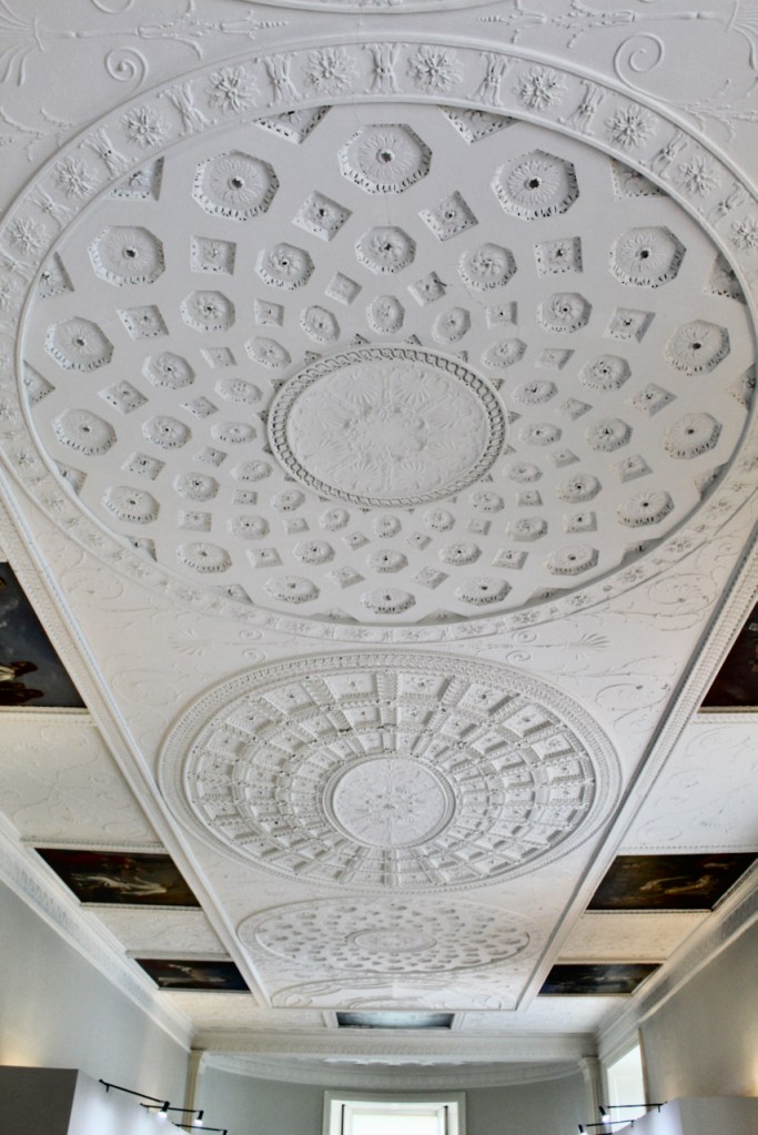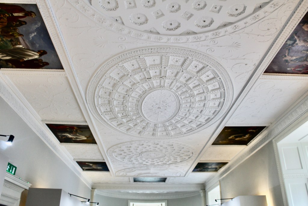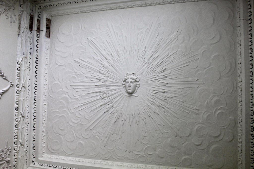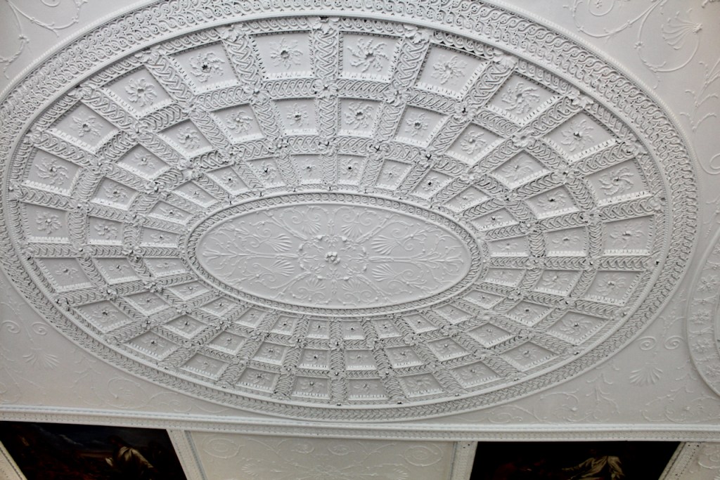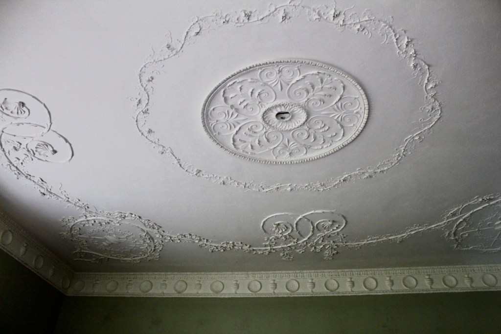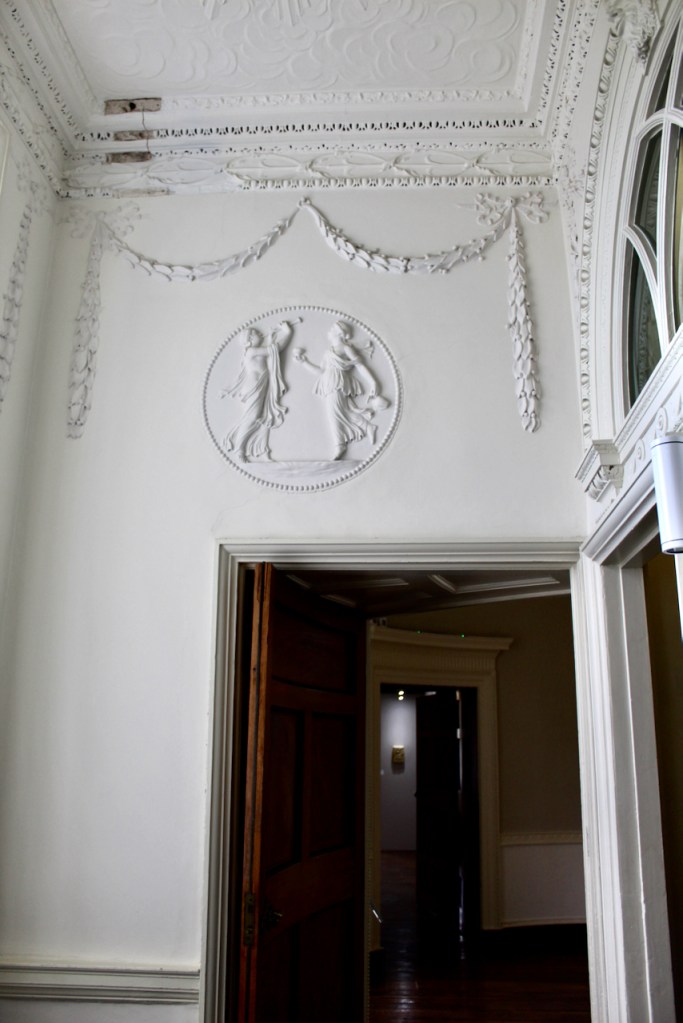 One of the more outstanding features of the house is the stucco-work of Adamesque style popularised by Robert and James Adam. This can be seen in the ornamental surrounds, wherein pictures are framed in plaster rather than oil.