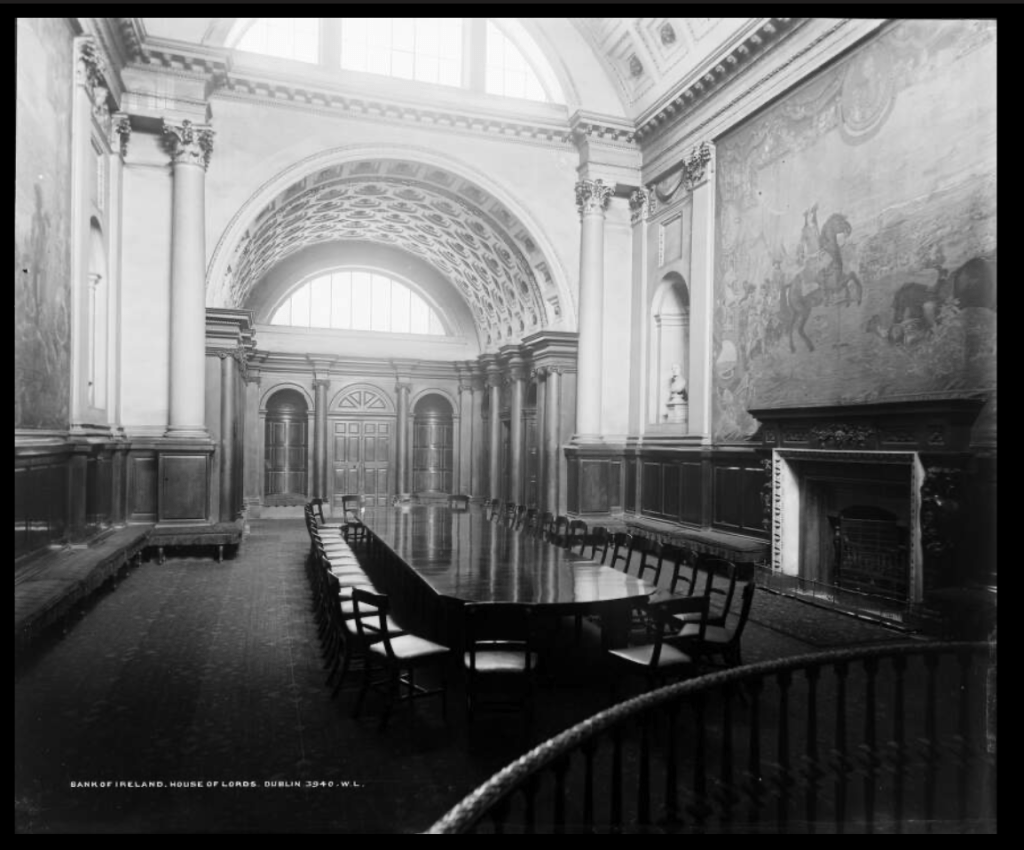The Dictionary of Irish Biography tells us that James’s political career began on 17 October 1741, when (then known as Lord Offaly) he entered the Irish house of commons as member for Athy. In 1744 he moved to the House of Lords after he inherited the earldom. [3] It was then that he embarked on his town house in Dublin. Now the houses of parliament are located next to Leinster house, but at the time, they were located in what is now the Bank of Ireland on College Green in Dublin.