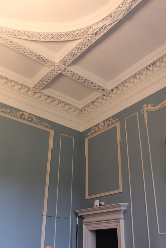 The ceiling as designed by James Wyatt is tripartite. I defer to Christine Casey for a description: