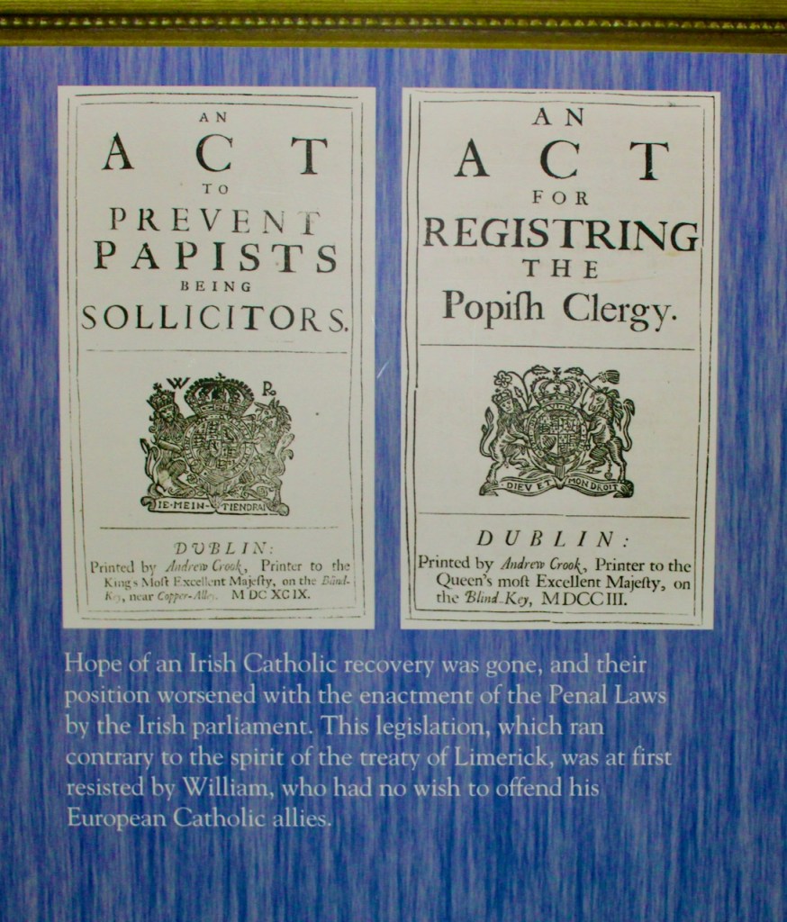 After winning the battle, William gained control of Dublin and the east of Ireland. However, the war continued until the Battle of Aughrim in July 1691, which led to the surrender at Limerick the following autumn. The surrender terms promised limited guarantees to Irish Catholics and allowed the soldiers to return home or to go to France. The Irish Parliament however then enacted the Penal Laws, which ran contrary to the treaty of Limerick and which William first resisted, as he had no wish to offend his European Catholic allies.