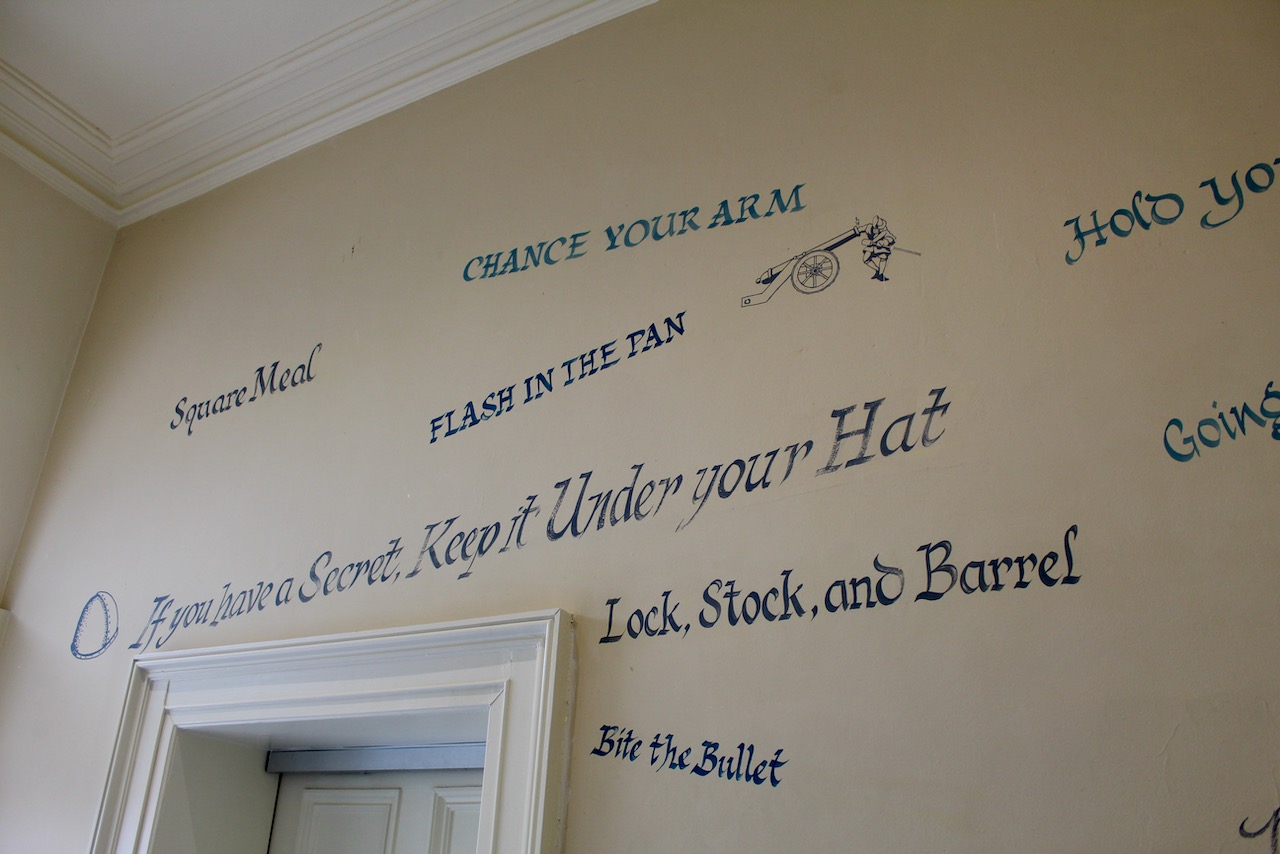 In 2010 a pipe burst, which was very destructive but fortunately the stuccowork was unharmed. The owners had to get new flooring – they managed to salvage parts and to buy salvaged wood from other houses. In rebuilding, Howard told us, he discovered that the walls are packed, in between the lathe and plaster, with dry moss and bracken, acting as insulation!
