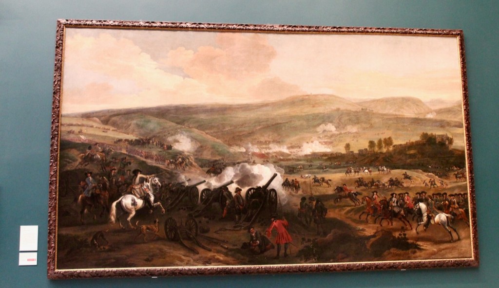 Battle of the Boyne painted by Jan Wyck, in the National Gallery of Ireland. The point of view is that of the Williamites who were based on high ground north of the River Boyne, looking southwards towards Donore Hill where James II and his troops were based.