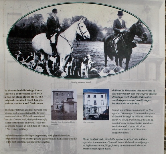 Dowth Hall, County Meath, photograph courtesy Sherry Fitzgerald.Dowth Hall, County Meath, photograph courtesy Sherry Fitzgerald.Dunboyne Castle, County Meath, now a hotel, photograph courtesy of hotel website.Signage at Oldbridge House, County Meath, including an old photograph of the house.