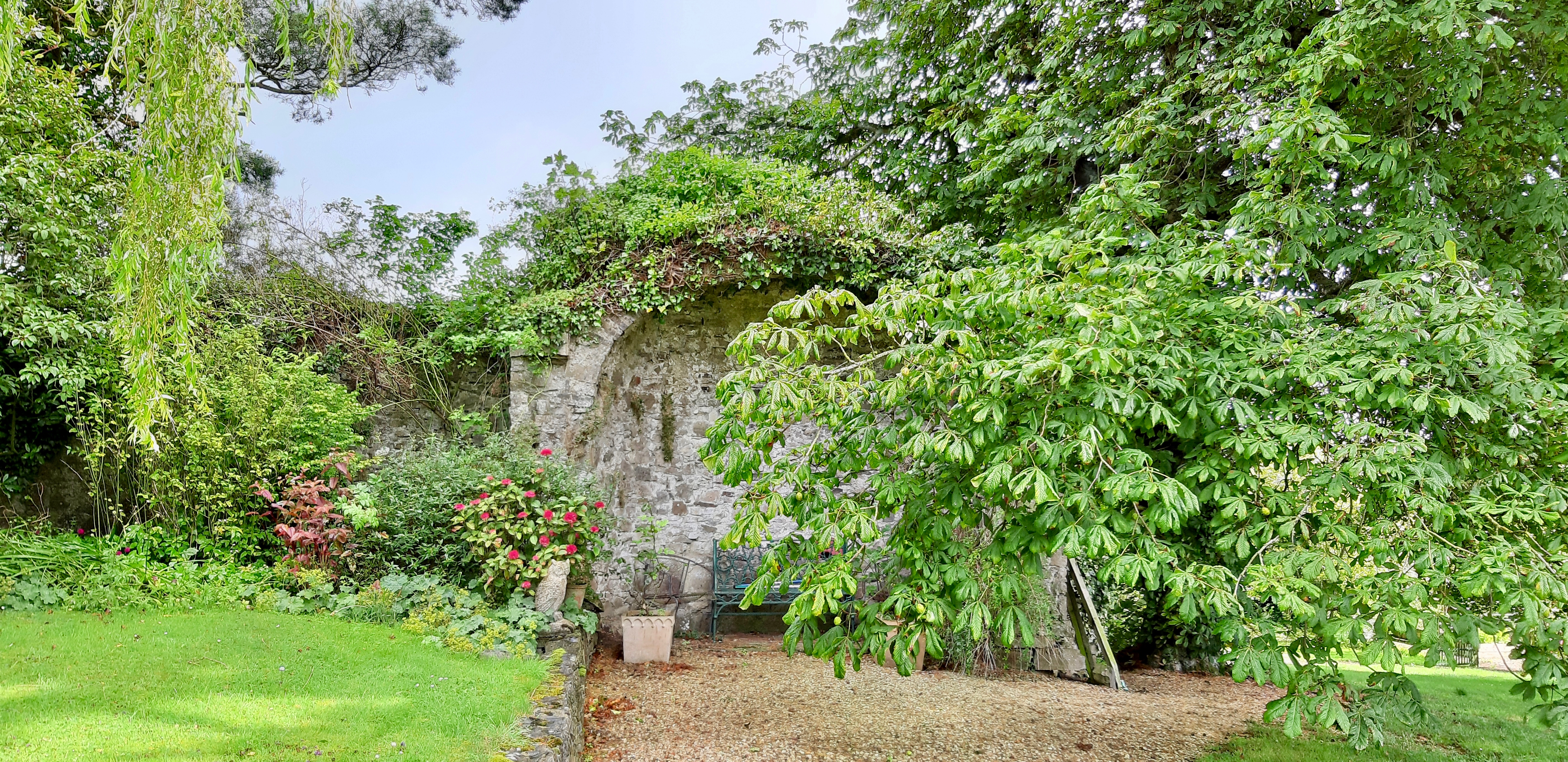 The website tells us: “Barnabrow Country House: in idyllic East Cork is discreet – it is like a secret garden that beckons. Visitors may happen upon it nestled in the rolling hills of East Cork with distant but tantalising glimpses of Ballycotton Bay. At first glance it appears contained – its banqueting hall, high on the hill, is not obvious, the twenty-two bedrooms are tucked away in various courtyards and the cottages are not apparent.“