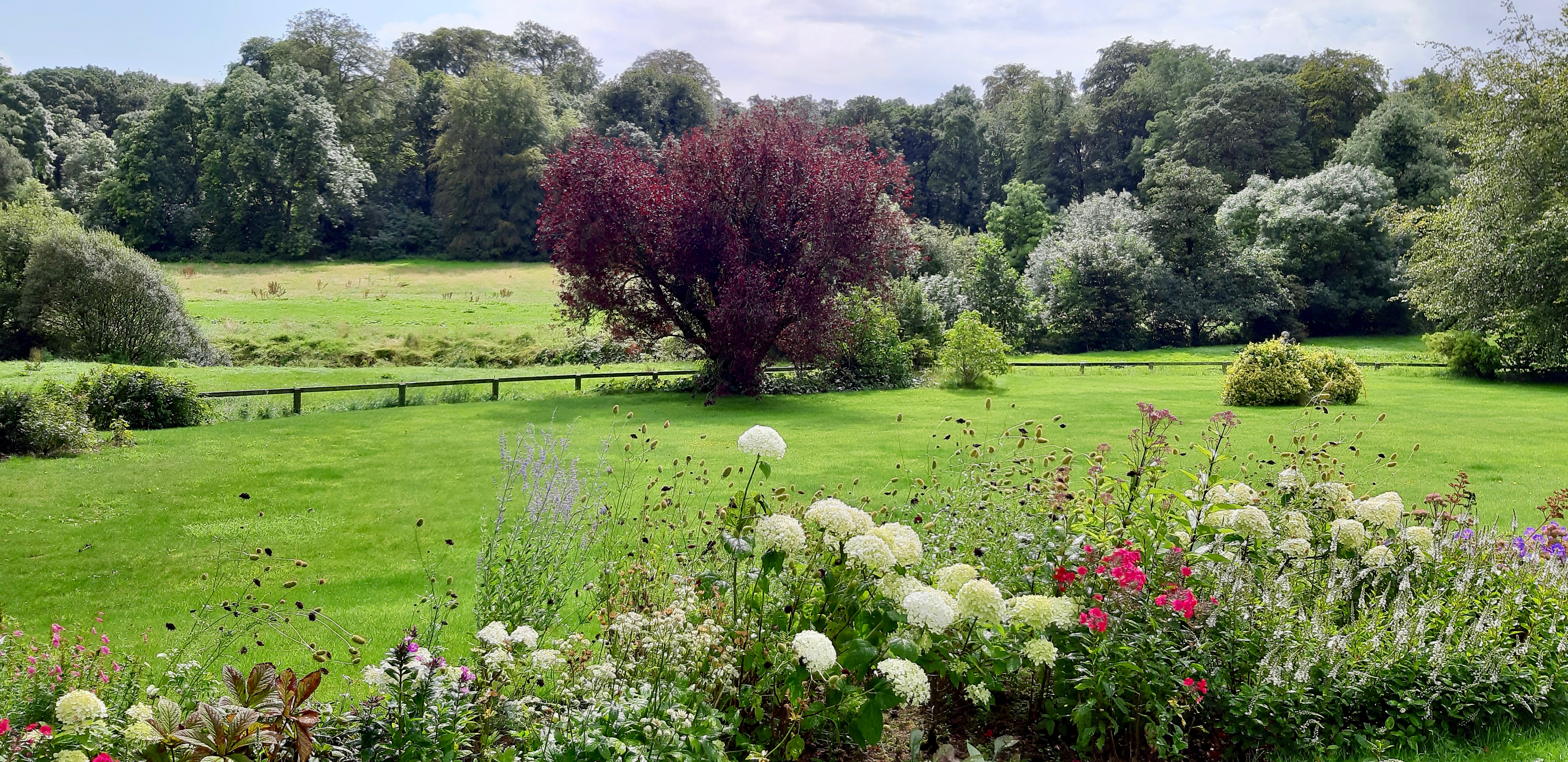“Elmfield Estate has been a family home for generations and of the Shaw family for the last 60 years. It has evolved through the years, from a modest dwelling house and stable yard in the 18c to an impressive Victorian Scottish baronial style house with turrets and ziggurat balustrades, built by the wealthy linen barons in the mid-1800s. The estate ran into disrepair after the second world war but was saved by the Shaws who have lovingly restored the house, farm, and gardens room by room lawn by lawn. Elmfield has certainly been a place of transformation and vision over the last 60 years. When Derek and Ann’s three children were little, they enjoyed the freedom and wildness that only a semi-derelict estate can offer. To turn that into what you see today is down to Derek’s vision.