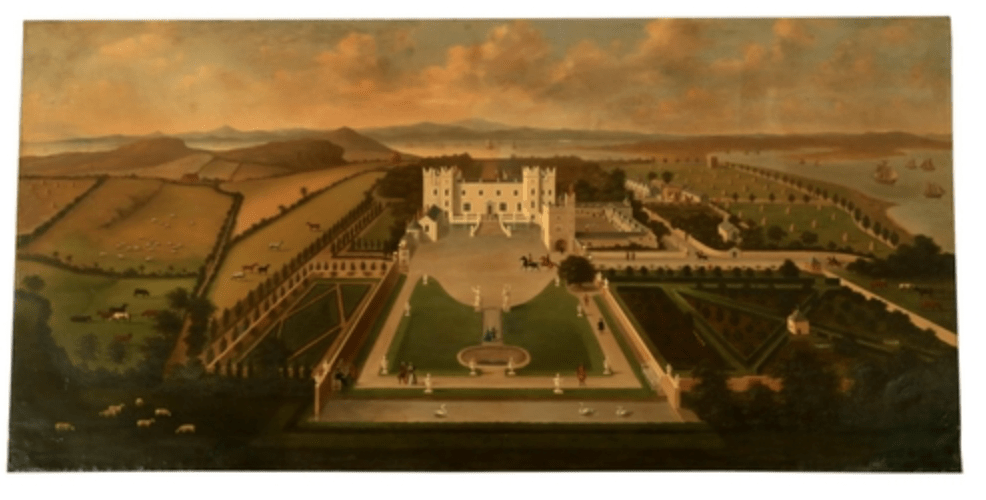 David La Touche purchased properties which passed to his sons: Marlay House to David (1729-1817), Harristown in County Kildare to John (1732-1805) [see my write-up https://irishhistorichouses.com/2020/09/27/harristown-brannockstown-county-kildare/ ], and Bellevue, County Wicklow, to Peter (1733-1828). Bellevue has since been demolished, in the 1950s [7].
