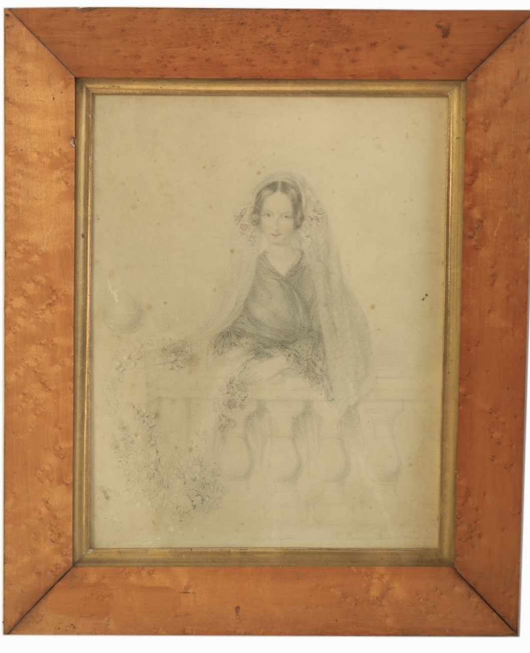 A son of Michael Frederick Trench, this is Frederick Trench (1775-1859). Inscribed on a label on the back: General Sir Frederick Trench/late of Heywood/A prominent promoter of/The Thames Embankment/& other improvements in London. By Unknown artist circa 1827, courtesy National Portrait Gallery 5505. The panorama of the Thames Quay cascading from Trench’s desk appears to stop at St Paul’s and is therefore intended to represent his A Collection of Papers relating to the Thames Quay, with Hints for some further Improvements, illustrated with lithographs by C. M. Baynes and published in 1825, re-issued in 1827. This followed an unsuccessful Bill in Parliament introduced to obtain Treasury support for the project, but in spite of influential backing the plans were dropped and the Embankment was not begun until five years after Trench’s death, with his elegant colonnades omitted. The furnishing of his room includes on a bracket the marble bust by Matthew Wyatt (1826) of Trench’s patron, the Duchess of Rutland, now at Castle Howard. Manuscripts and a William Kent table point to his various antiquarian interests.