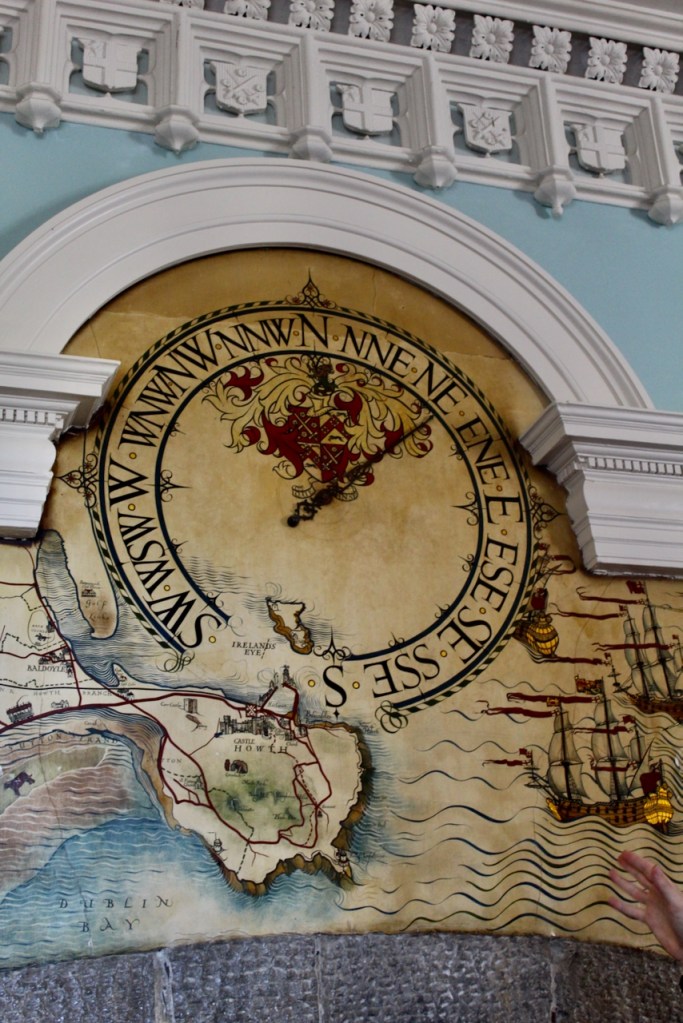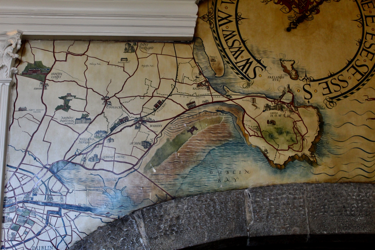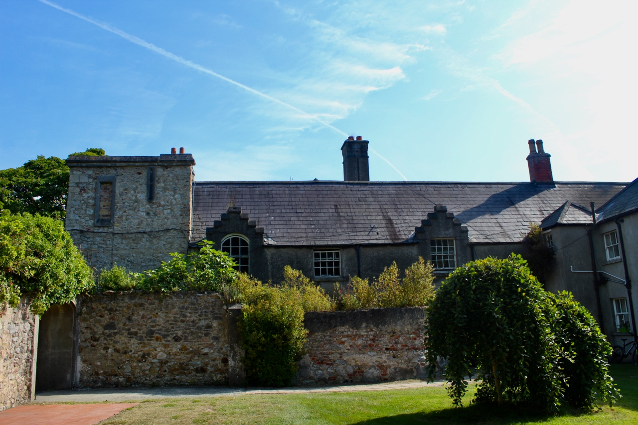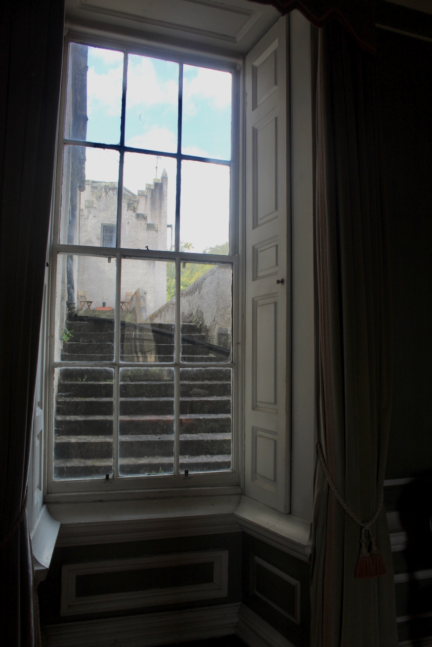 The Howth Castle website tells us that the Keep, the tower incorporated into the castle, also dates from the mid fifteenth century. Unfortunately I have misplaced the notes I took on my visit to the castle. Daniel pointed out the various parts of the castle as we stood on the balustrade looking out into the courtyard, telling us when each part was built. From the photograph of the painting above, the Keep is the large tower on the left of the front door, and the Gate House is slightly to the front of the building to the right. Traces remain in the gardens of the wall and turrets, which would have enclosed the area. You can’t fully see the keep from the front of the house.