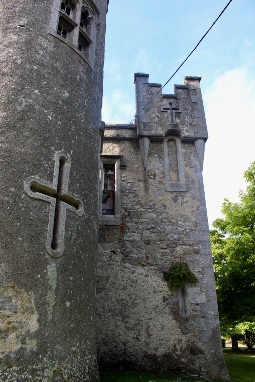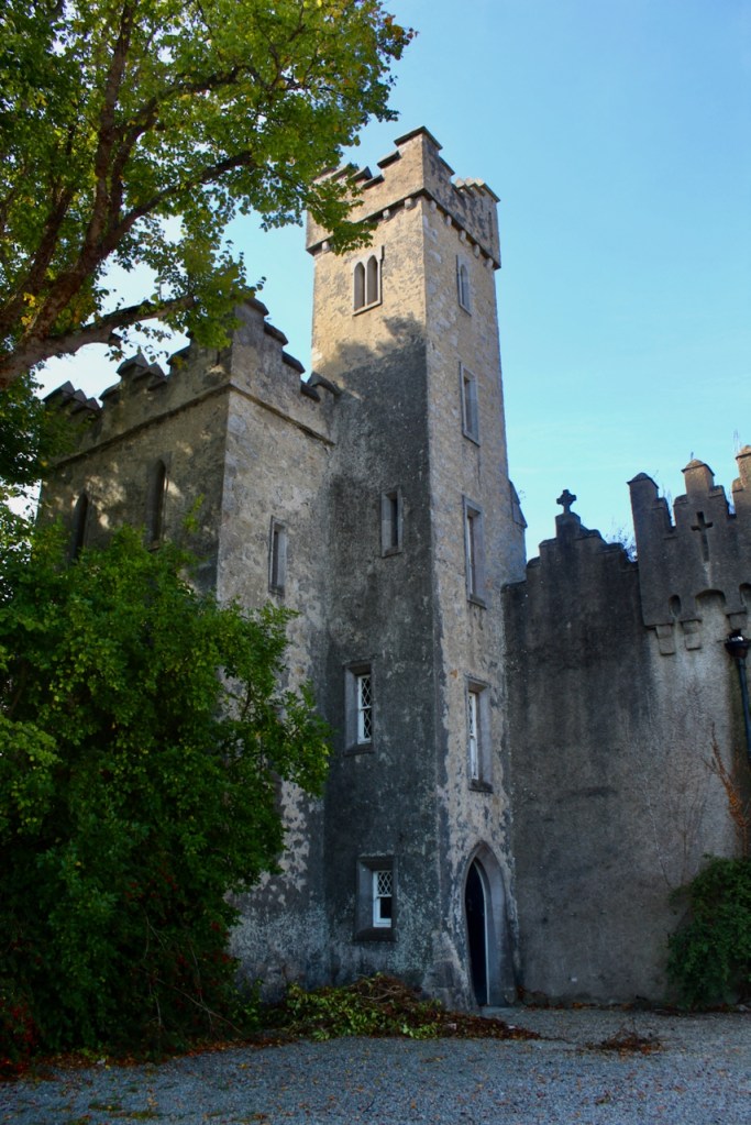 The Pains took their Gothicizing skills then to Mitchelstown Castle in 1823-25. In 1825 they also worked on Convamore (Ballyhooly) Castle but that is now a ruin. They also probably worked on Quinville in County Clare and also Curragh Chase in County Limerick (now derelict after a fire in 1941), Blackrock Castle in County Cork (now a science centre, museum and observatory which you can visit [7]), they did some work for Adare Manor in County Limerick (also now a luxury hotel), Clarina Park in Limerick (also, unfortunately, demolished, but you can get a taste of what it must have been like from its gate lodge), Fort William in County Waterford, and they probably designed the Gothicization and castellation of Ash Hill Towers in County Limerick (a section 482 property and with lovely tourist accommodation, see my entry https://irishhistorichouses.com/2023/04/06/ash-hill-kilmallock-co-limerick/), alterations and castellation of Knappogue Castle, County Clare (you can also visit and stay, or attend a medieval style banquet), Aughrane Castle mansion in County Galway (demolished – Bagots used to own it, I don’t know if we are related!), a castellated tower on Glenwilliam Castle, County Limerick and more.