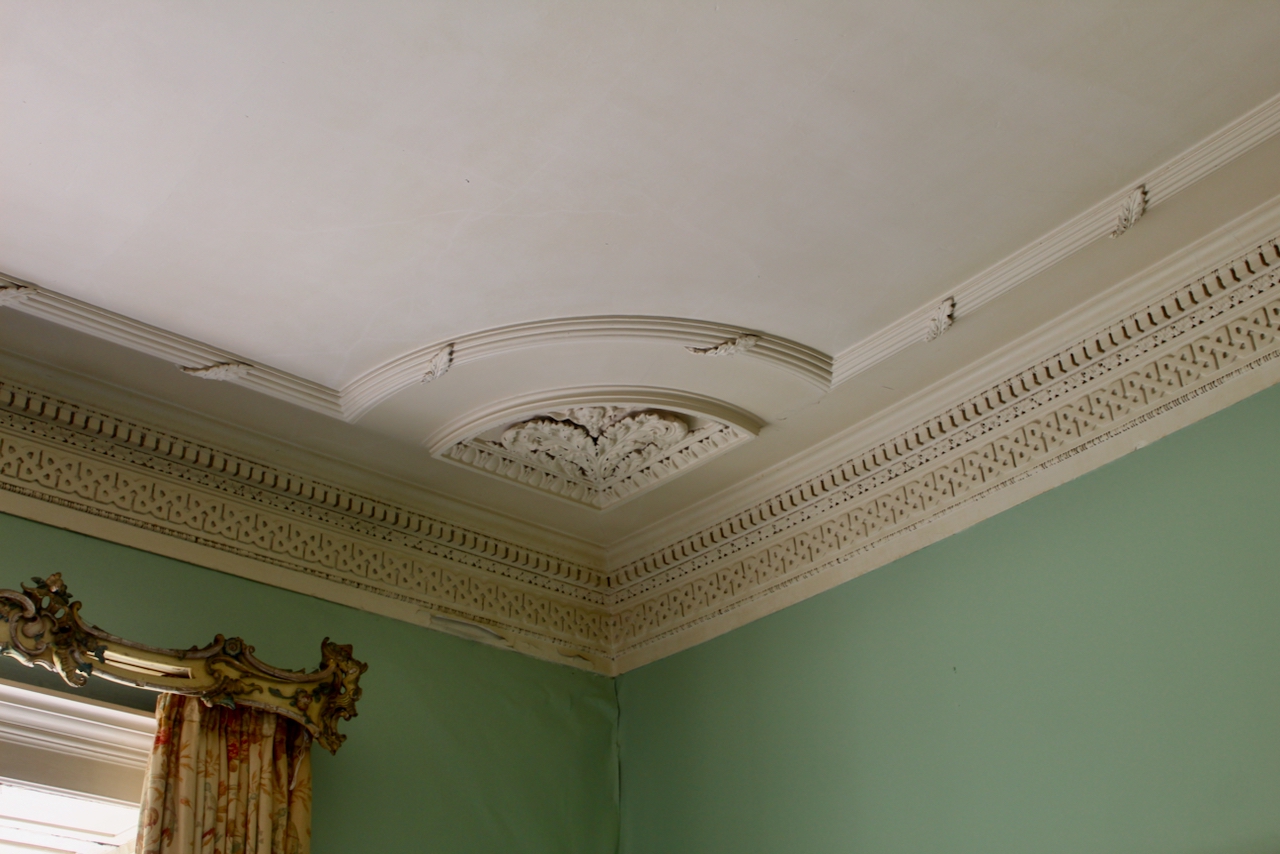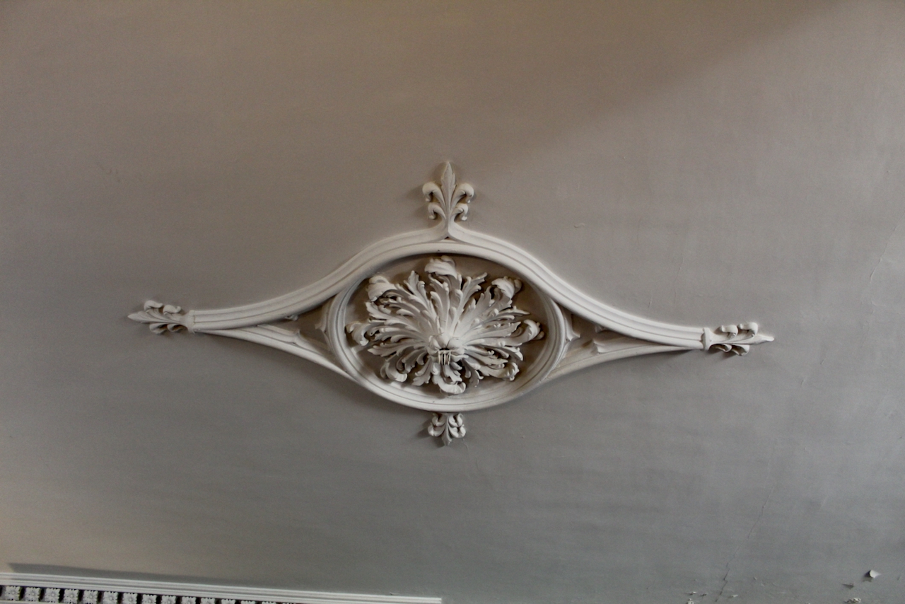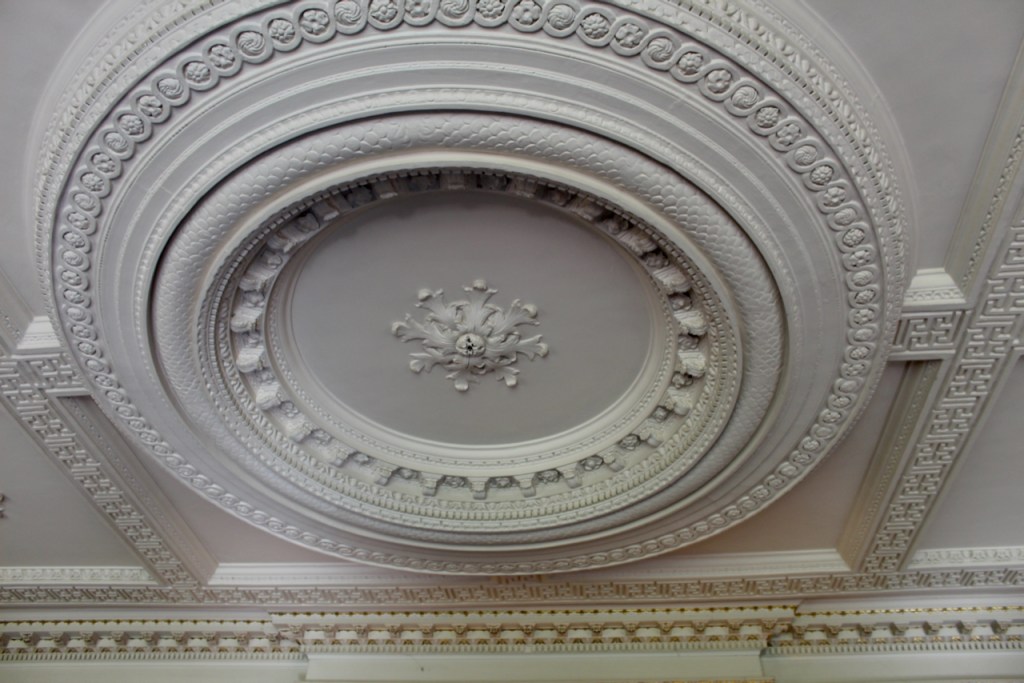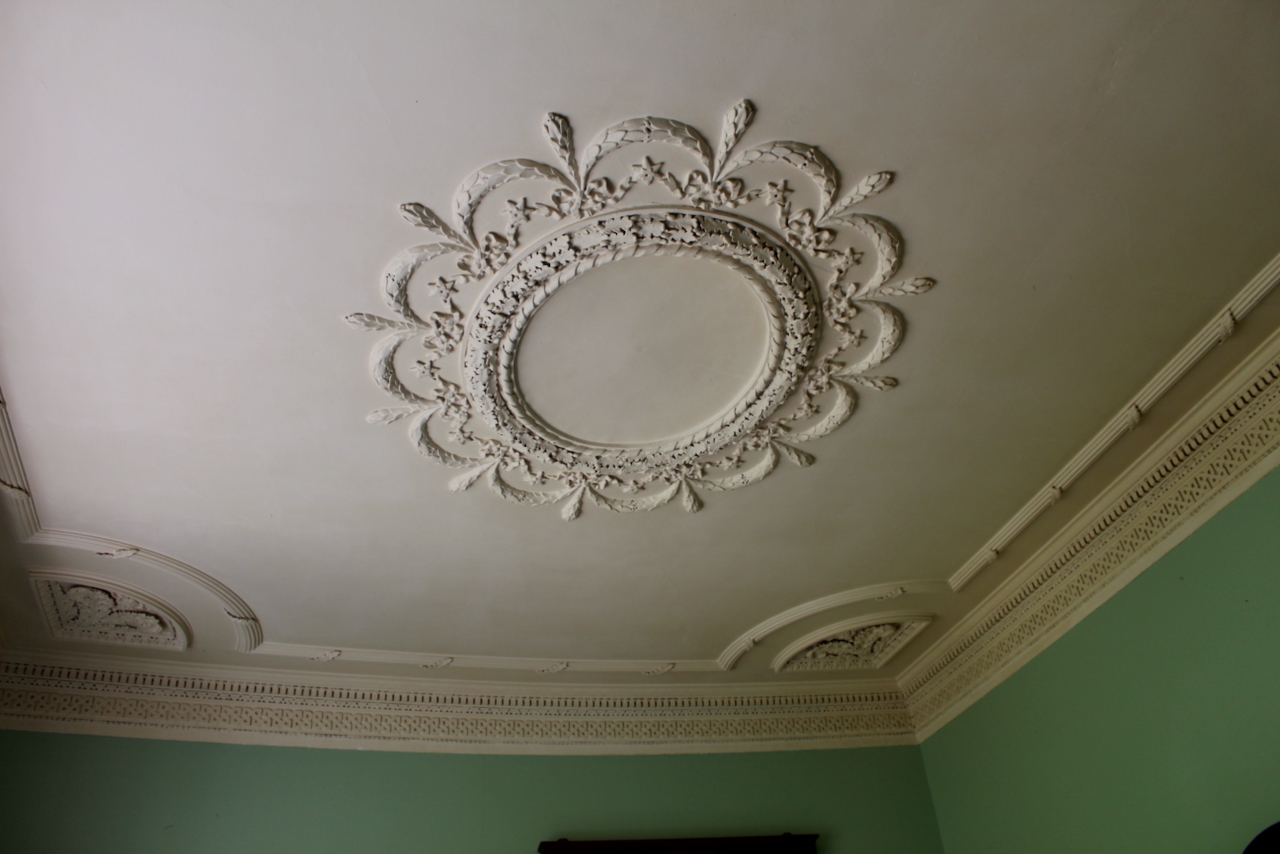 There is also a fine plasterwork ceiling in the oval room. Unfortunately the photographs do not show the ceiling.