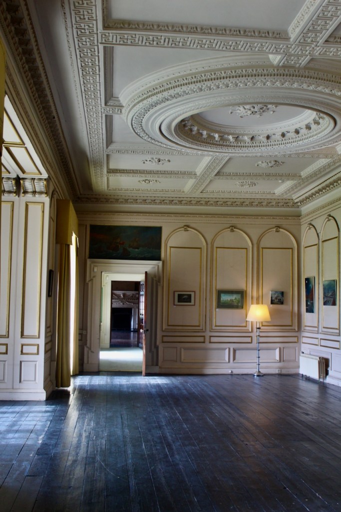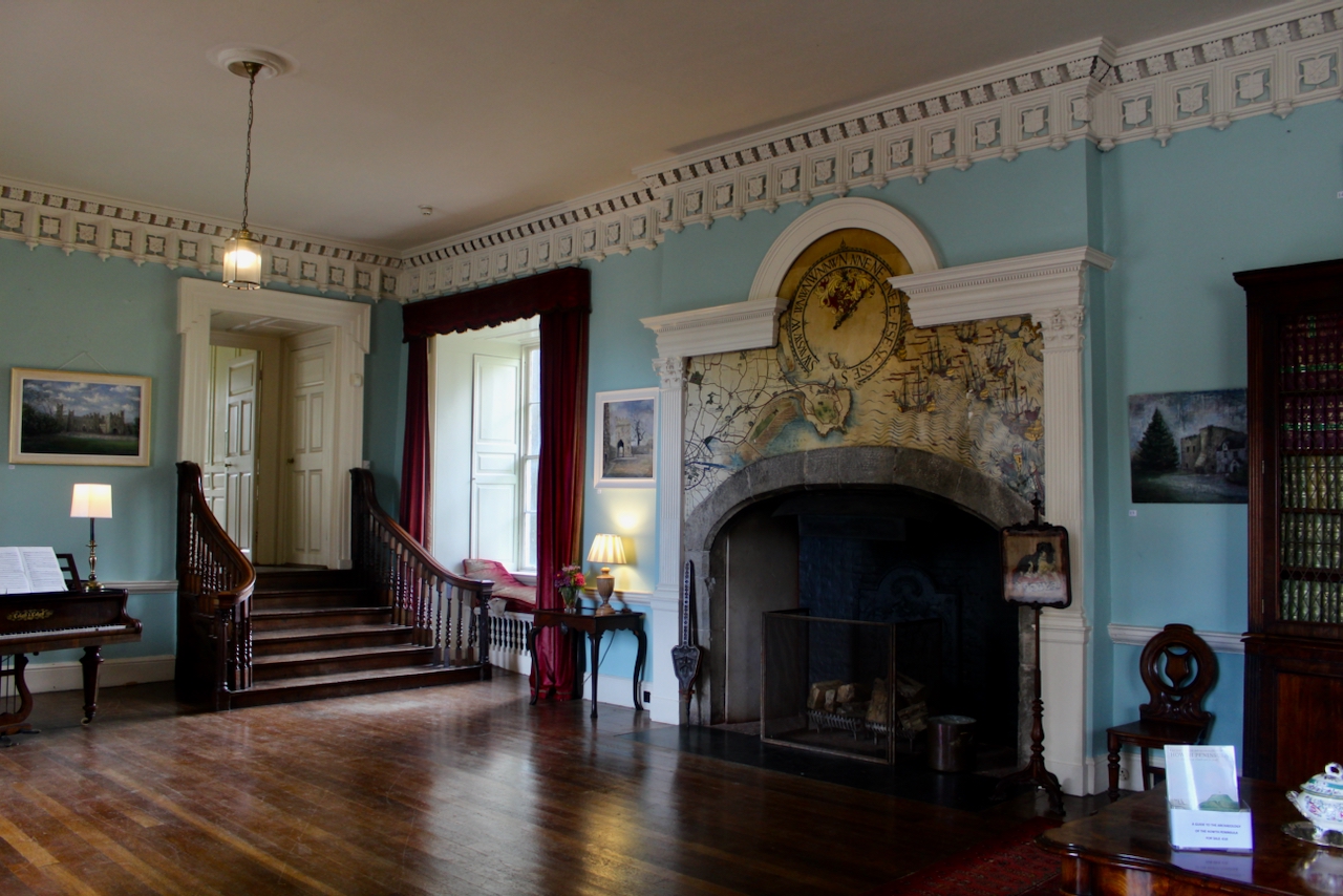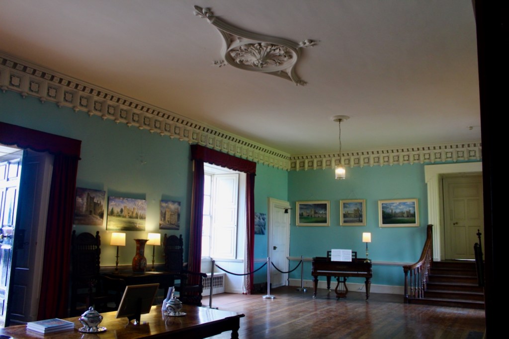 Unfortunately one is not allowed photography inside the house, but there are a few photographs on the County Council website. The house includes an elegant entrance hall, ballroom, and unusual oval music room, with decorative plasterwork by Michael Stapleton.