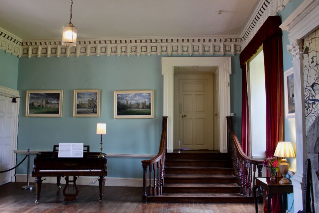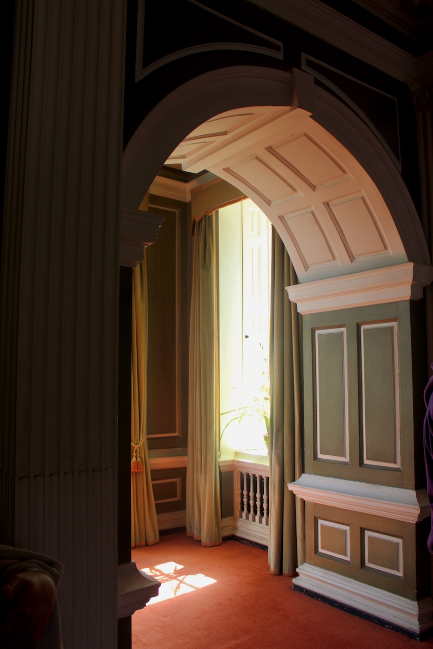 The Hall has a screen of Corinthian columns and frieze of tripods and winged sphinxes. Our guide pointed out that it is a large front hall for the size of the house. This is because it was built to impress visitors. It is not perfectly symmetrical, but has a dummy door to improve the symmetry.