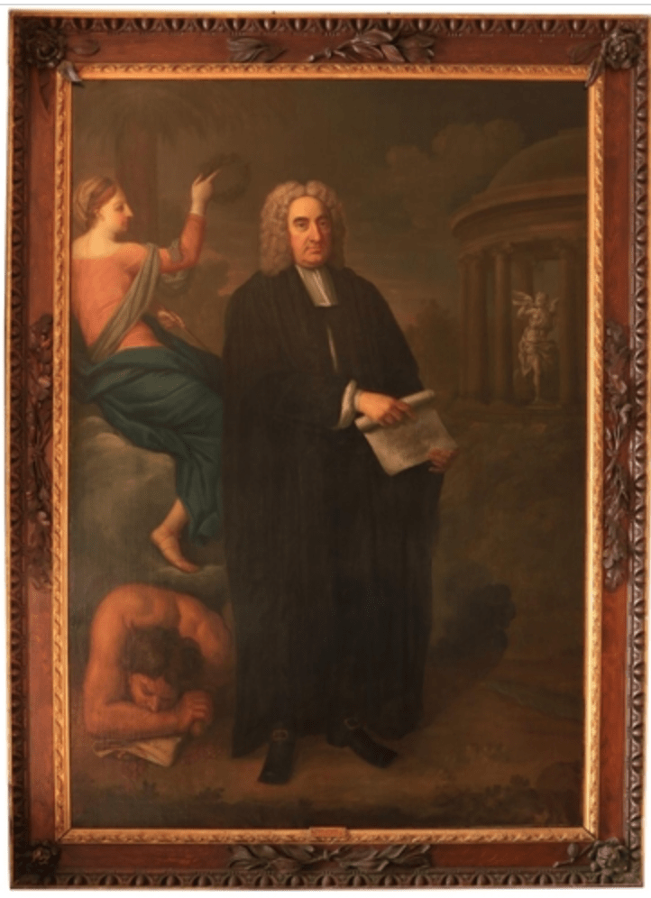 Caesar Colclough (d. 1766), known as “Great Caesar,” great-grandson of Catholic Dudley who had rebelled in 1641, united the properties. His grandfather, Patrick Colclough of Duffry Hall, married Katherine Bagenal of Dunleckney, County Carlow. Patrick Colclough was Catholic and very active in the Jacobite cause and was attainted of High Treason and outlawed by King William III but he died in 1691, before the attainder passed into law, so his eldest son was able to inherit his estates. His son Dudley (d. 1712) was brought up in the Protestant faith. [3] He married Mary Barnewall, granddaughter of Nicholas Barnewall, 1st Viscount Barnewall of Kingsland. The Great Caesar was their son.