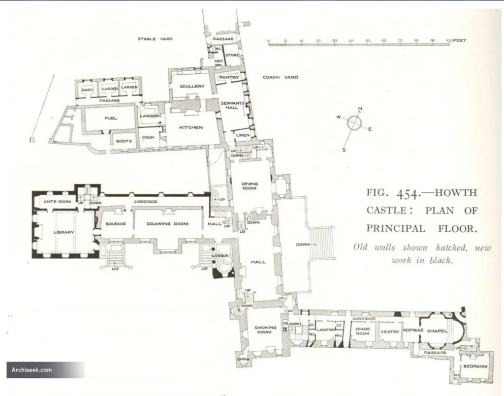 Timothy William Ferres tells us that the current building is not the original Howth Castle, which was on the high slopes by the village and the sea. [2]