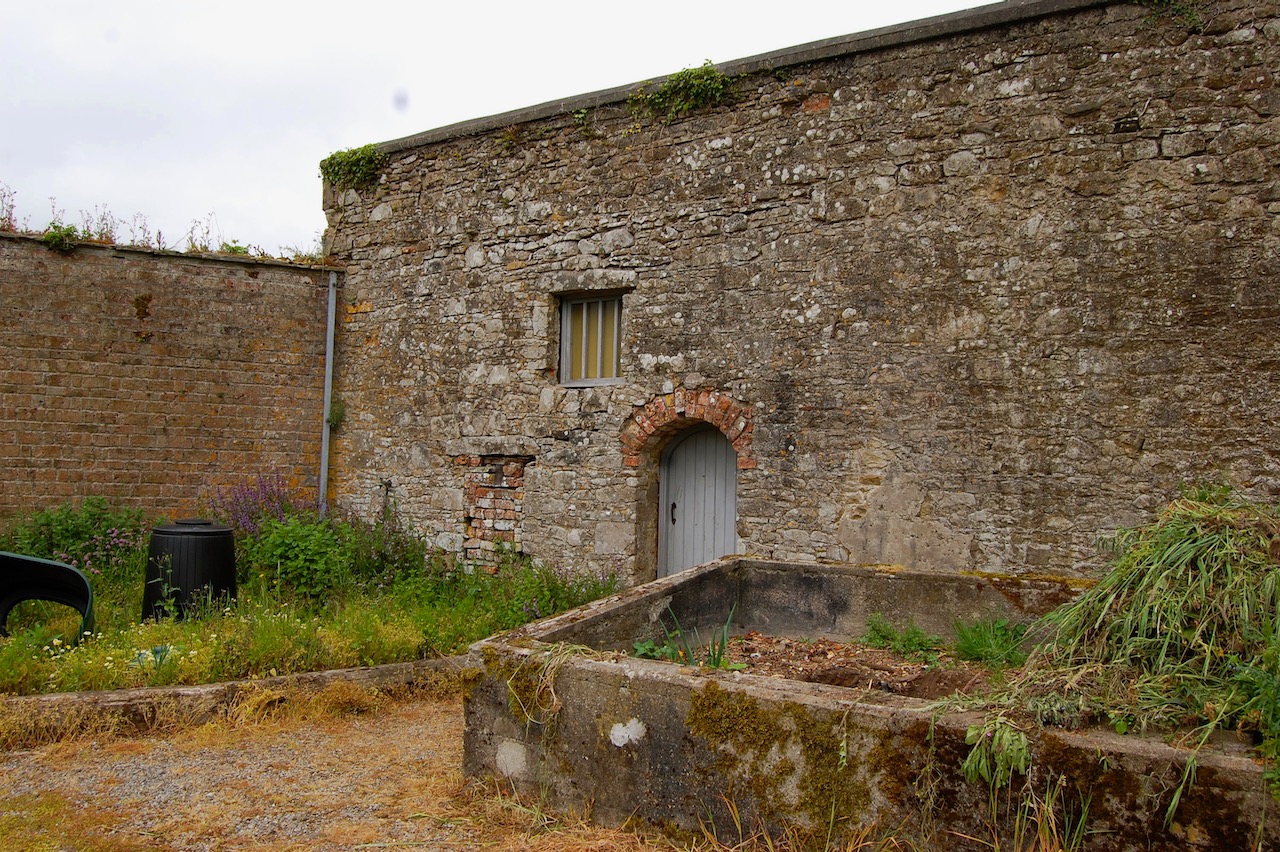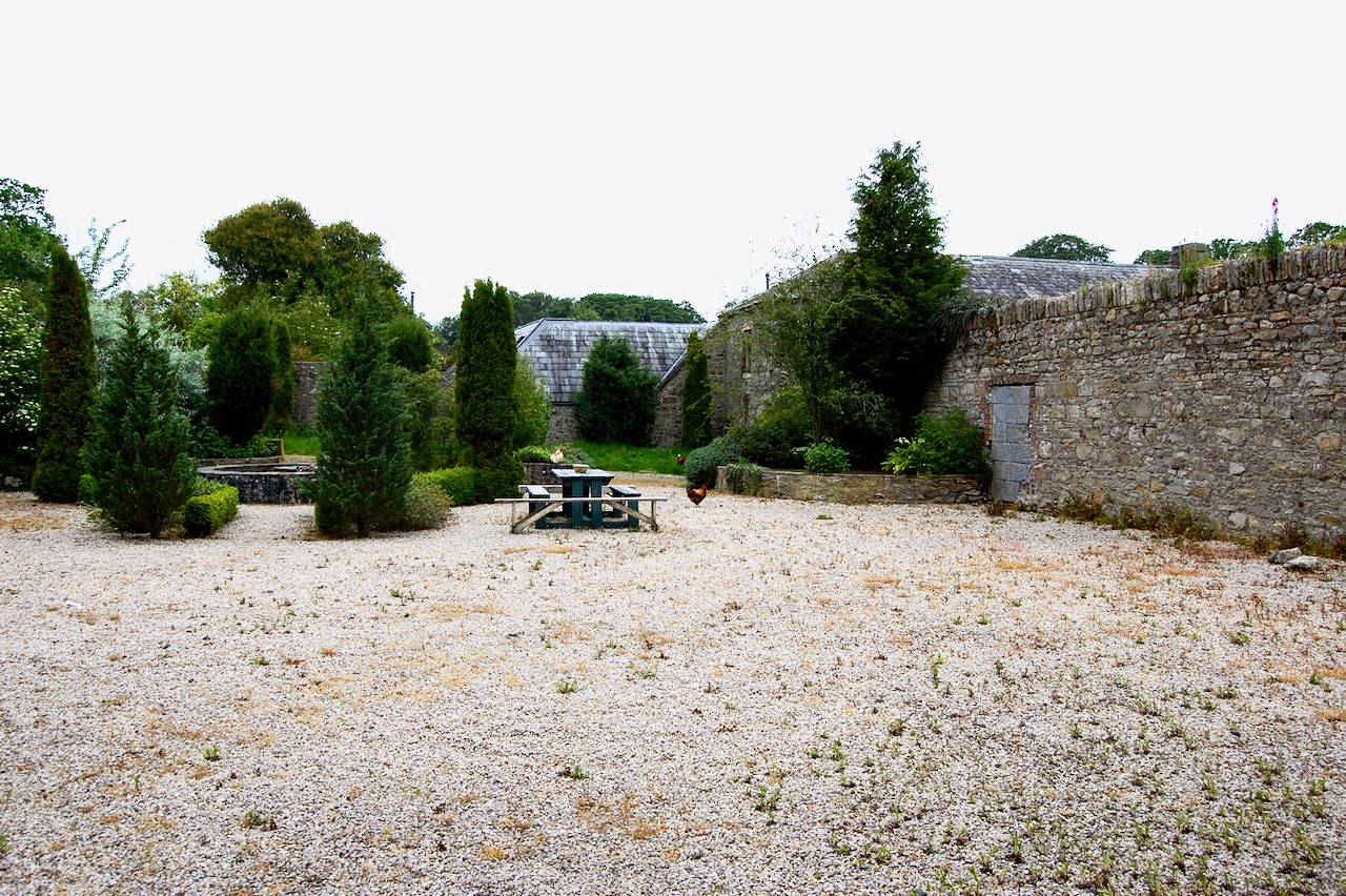 There is a stable complex to one side of the house. Andrew brought us out to show us the function room, which was originally a coal shed. It’s huge, and would be wonderful for parties, and is available for hire. The garden outside it, which would also be available for the functions, is romantic and beautiful, with a pond and stone walls.
