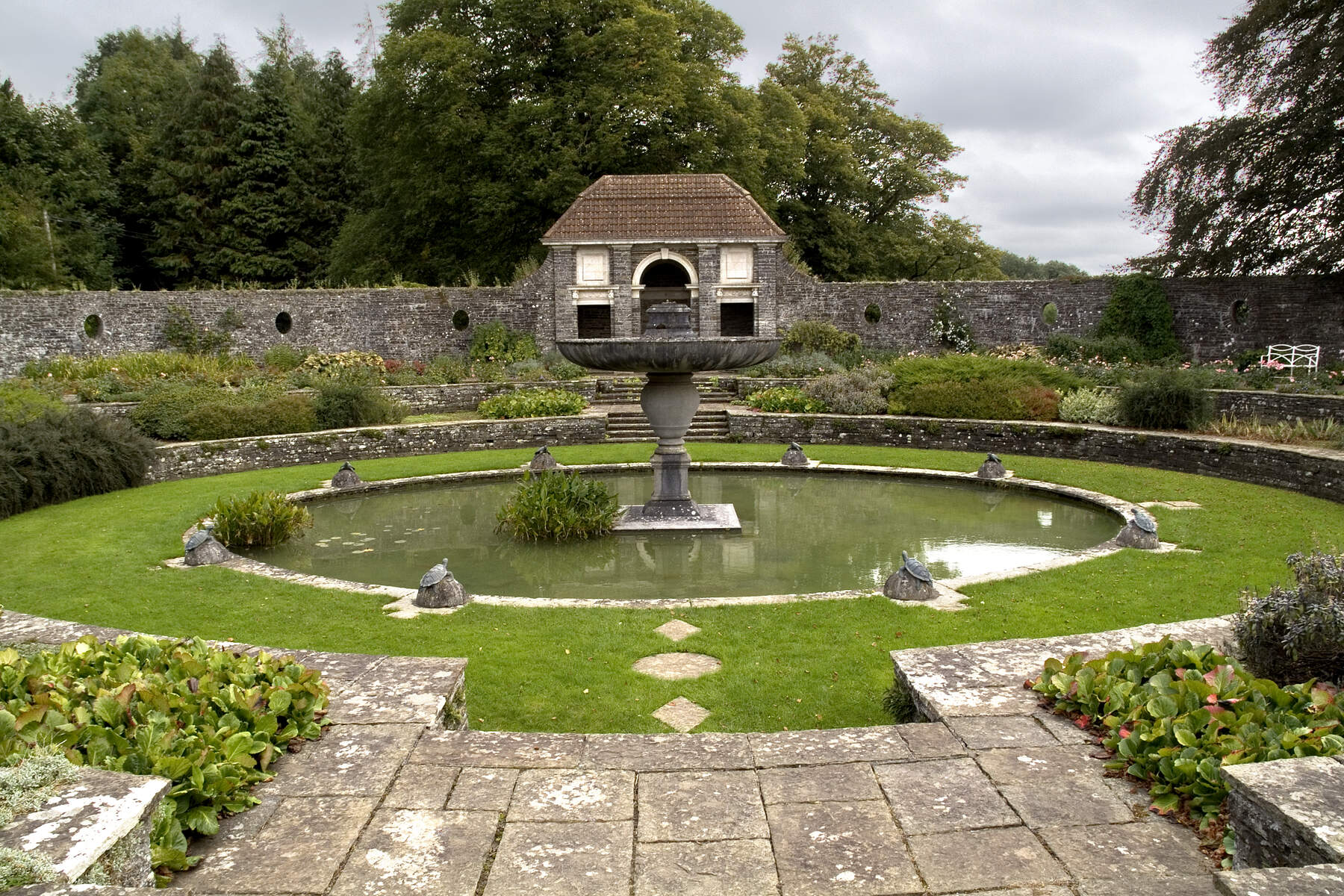 “The large reconstructed greenhouse is the setting for the tea room. Its design copies the original greenhouse built around 1820, along with the walled garden behind it.