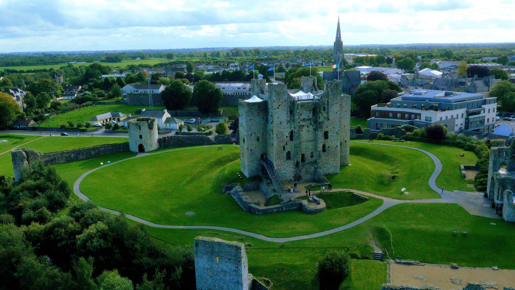 “The castle mound is all that remains of the 14th century motte built by Norman settlers. The ruins of the stone-built tower were pulled down in the 19th century.