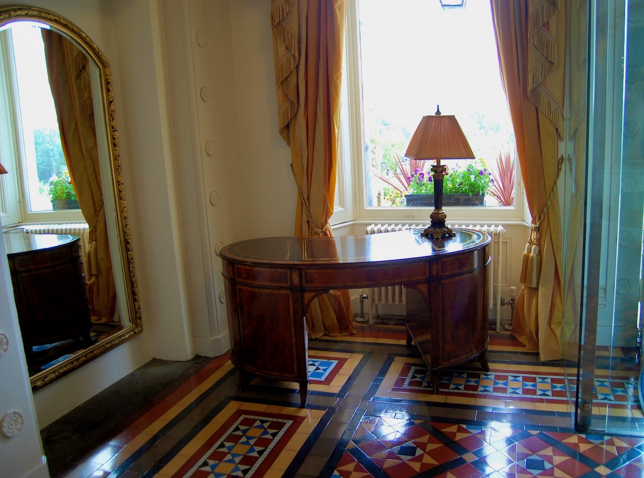 “Problems, however, were not long in surfacing. Government grants, geared to the provision of commercial accommodation, tended to insist on features hardly compatible with the preservation of the fragile character of a historic house; from en suite facilities to numbers on bedroom doors. Planning permission for such a change of use also triggered an avalanche of fire provisions. Although at times the differences between the parties seemed irreconcilable a spirit of compromise won through. Bedrooms were permitted with designated rather than en suite bathrooms with the ample recompense to visitors today of splendid airy proportions and traditional full-length, cast-iron baths with ball plugs. Fire signs were accepted. Numbers on doors were not.