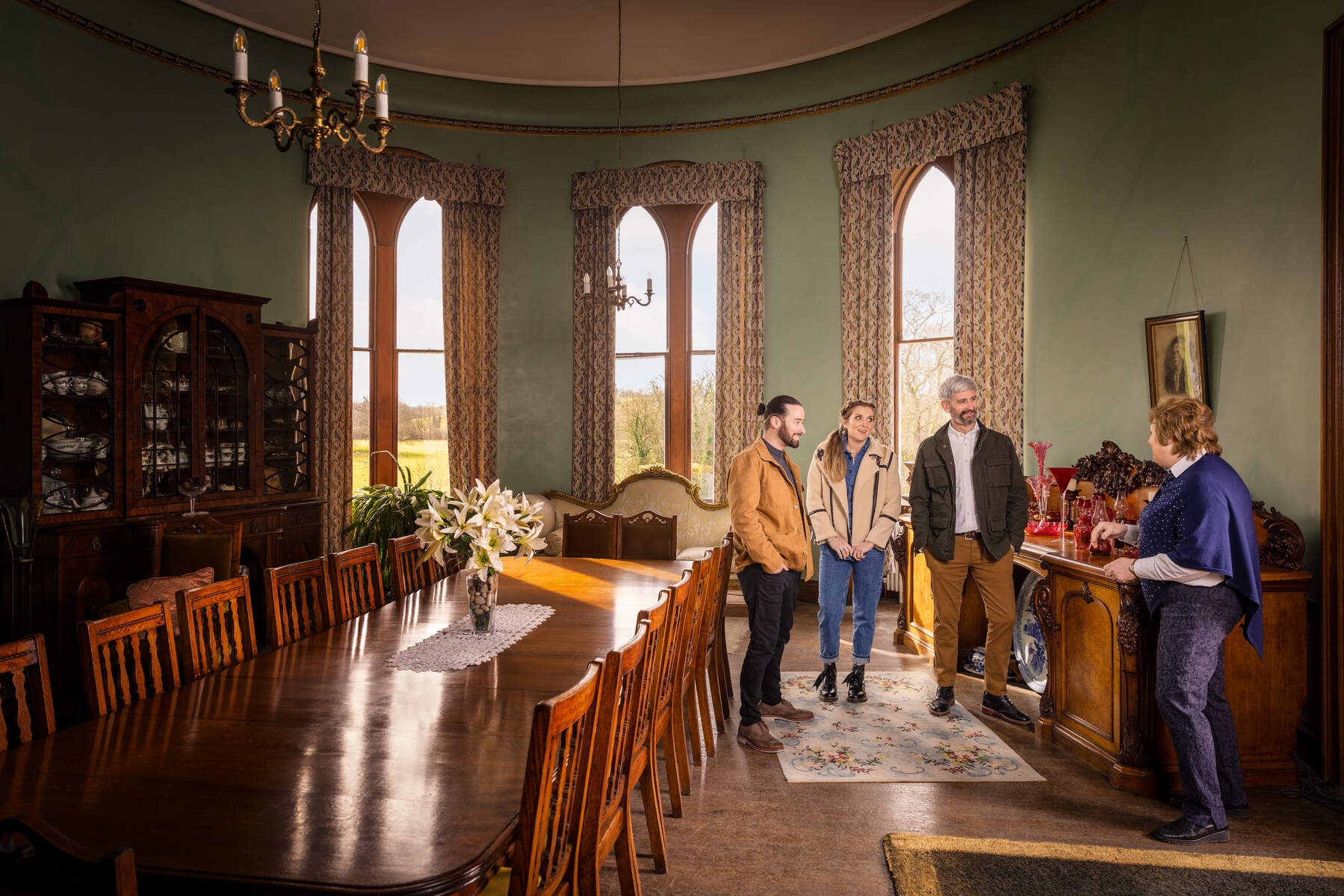 “The Classic Tour encompasses everything well loved about the Estate. Current estate owners Nicholas and Colleen Lowry host all Tours personally. This tour includes a walk through the Victorian gardens, with their majestic setting overlooking the beautiful Lough Fadda. As well as, a private tour of main ground floor rooms of the impressive Manor House. The Manor House was built in 1871-74 and designed by Pepy’s Cockerall a close friend of William Morris. After that, enjoy a guided stroll around the extensive Coach , Carriage and Costume Collections from yesteryear.“