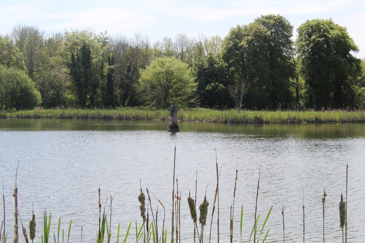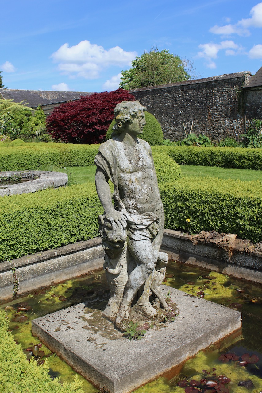 Before we walked the circumference of the field and lake, Michael showed us to the walled garden behind the house. On the way we passed a statue of Flora: