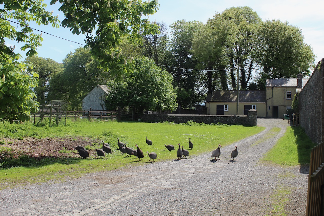 We heard the distinctive cry of a peacock and one strutted in the yard. Guinea fowl ran around in a large gang, alerting owner Michael to our visit.