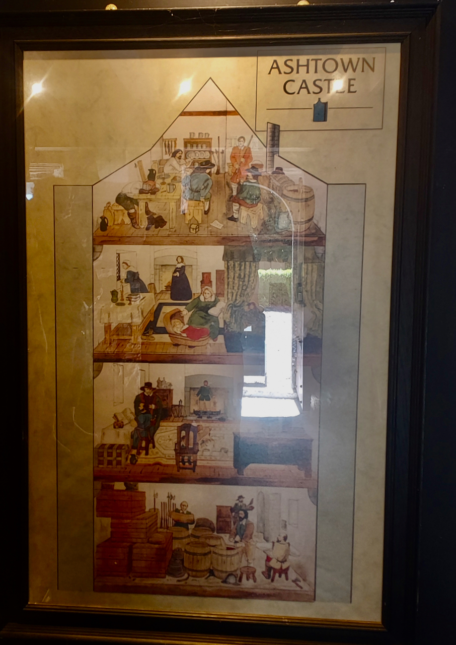 The guide showed us what the house used to look like, that had been attached to the castle. For some more photographs, you can visit the Irish Tower House website. [2]