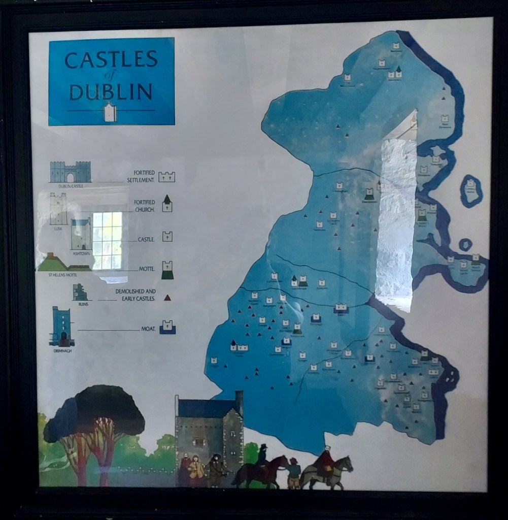 The website tells us: “Located in the centre of the ancient town Swords Castle contains over 800 years of history and, as a recent surprising discovery of burials beneath the gatehouse shows, it has yet to give up all of its secrets. The castle was built by the Archbishop of Dublin, John Comyn, around 1200, as a residence and administrative centre. The extensive complex of buildings is in the form of a rough pentagon of 0.5 hectares and is enclosed by a perimeter wall of 260 meters. It is a National Monument, and it is the best surviving example of an Archbishop’s Palace in Ireland. The curtain walls enclose over an acre of land that slopes down to the Ward River. This complex of buildings is made up of many phases of reuse and redesign reflecting its long history and changing fortunes.”