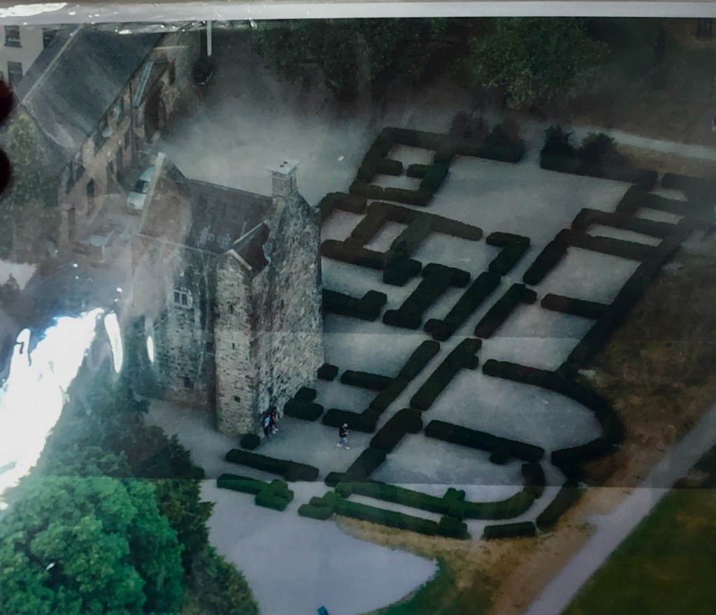 Outside, the hedges to one side of the castle form the shape of the house that used to stand there, attached to the old castle.