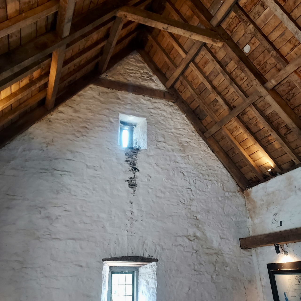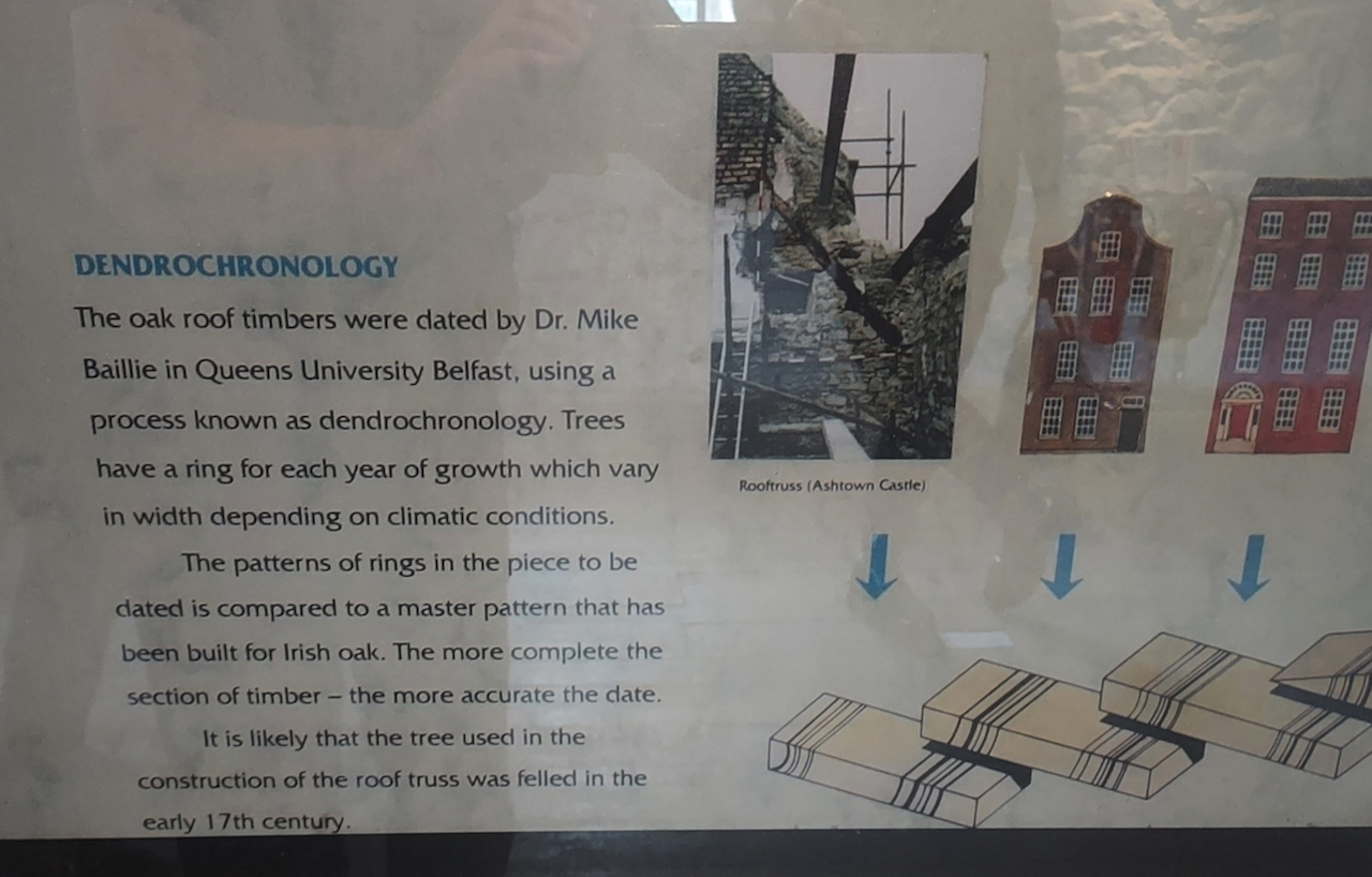 It is not known when the tower house was built but a fragment of a wooden roof truss, found in the wall during the restoration project, has been dated by dendrochronology to the early seventeenth century. The OPW website tells us that it could date further back, as early as the fifteenth century.