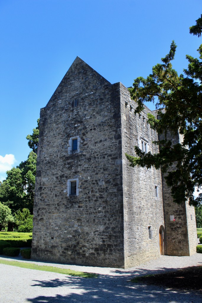 The website describes the Castle: “Drimnagh Castle is the only castle in Ireland to retain a fully flooded moat. Its rectangular shape enclosing the castle, its gardens and courtyard, created a safe haven for people and animals in times of war and disturbance. The moat is fed by a small stream, called the Bluebell. The present bridge, by which you enter the castle, was erected in 1780 and replaced a drawbridge structure.“