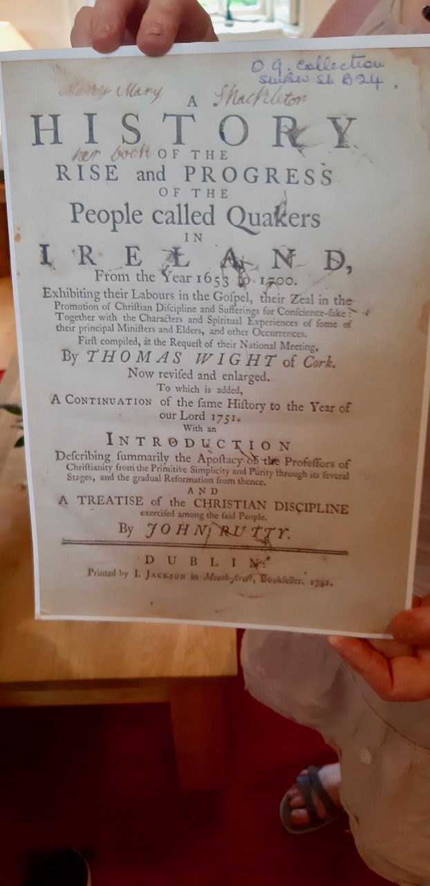 A Quaker settlement was also established in the late 17th century in Ballitore, County Kildare, by two Quakers, John Bancroft and Abel Strette, who began farming in the area, and Ballitore is still known as the Quaker Village. A Quaker School was founded in Ballitore by Abraham Shackleton (1697–1771) in 1726. Stephen and I visited Ballitore the following month, in August 2019.