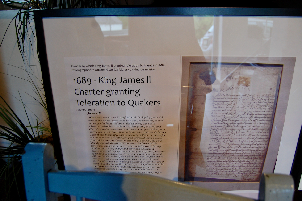 In 1689 King James II granted toleration to the Quakers, which means that they no longer had to pay the tithes to the Church of England/Ireland.
