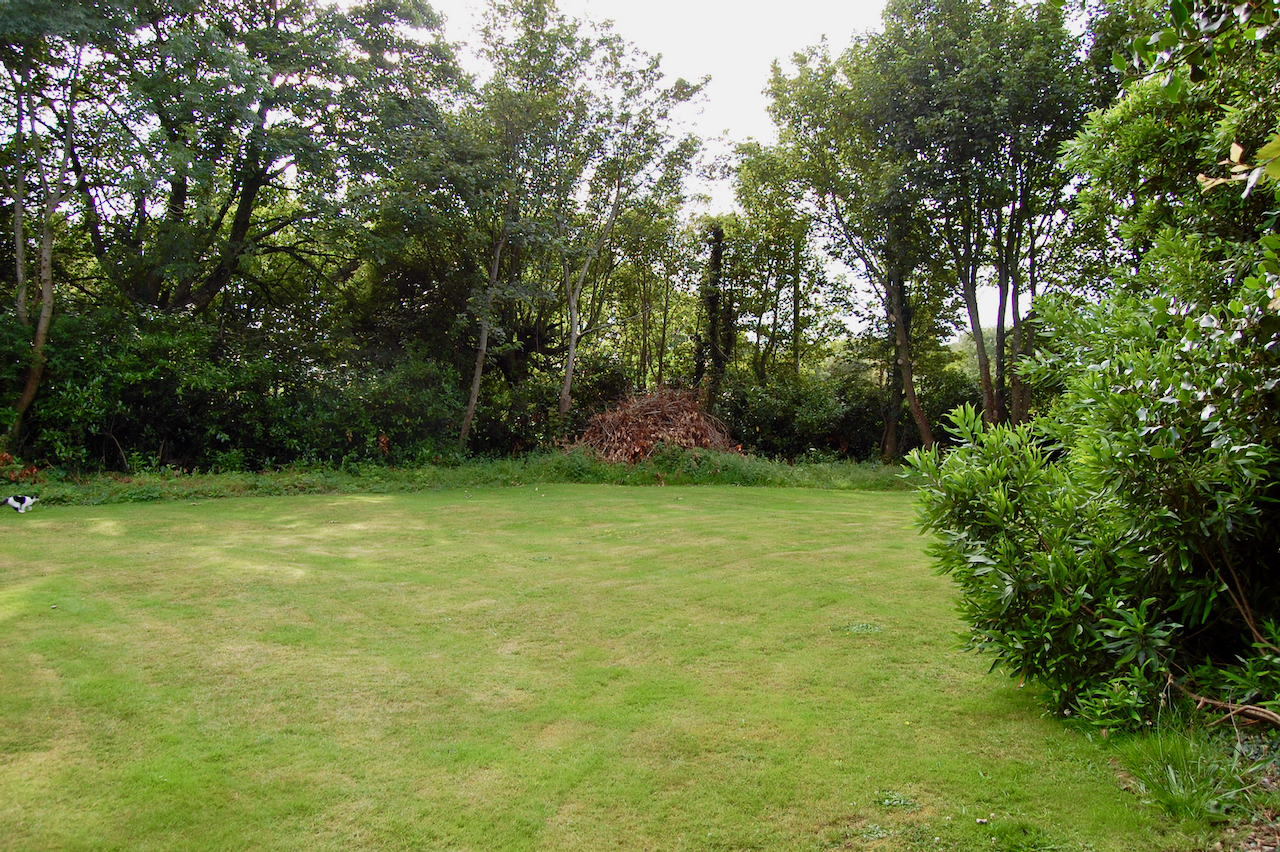 If you look closely you can see a division in the floor. This would have been a wall, dividing the living quarters from the animal quarters. You can see the original door lintel. The fourth wall has been levelled, as you can see in the next picture, from the back of the cottage: