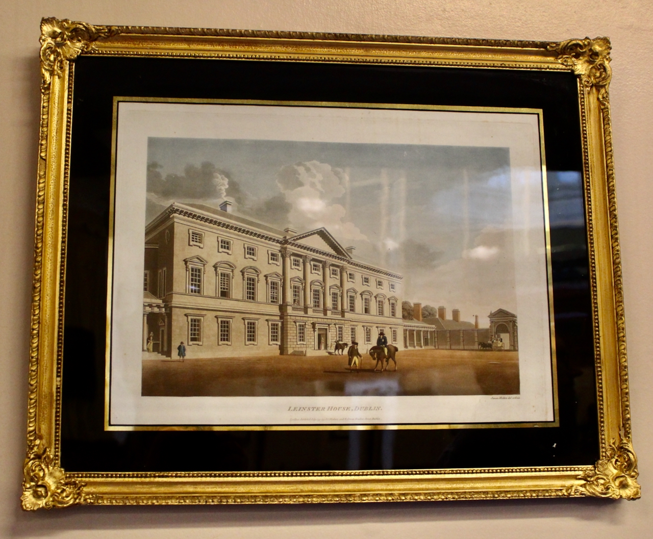 The Dictionary of Irish Biography tells us that James’s political career began on 17 October 1741, when (then known as Lord Offaly) he entered the Irish house of commons as member for Athy. In 1744 he moved to the House of Lords after he inherited the earldom. [3] It was then that he embarked on his town house in Dublin. Now the houses of parliament are located next to Leinster house, but at the time, they were located in what is now the Bank of Ireland on College Green in Dublin.