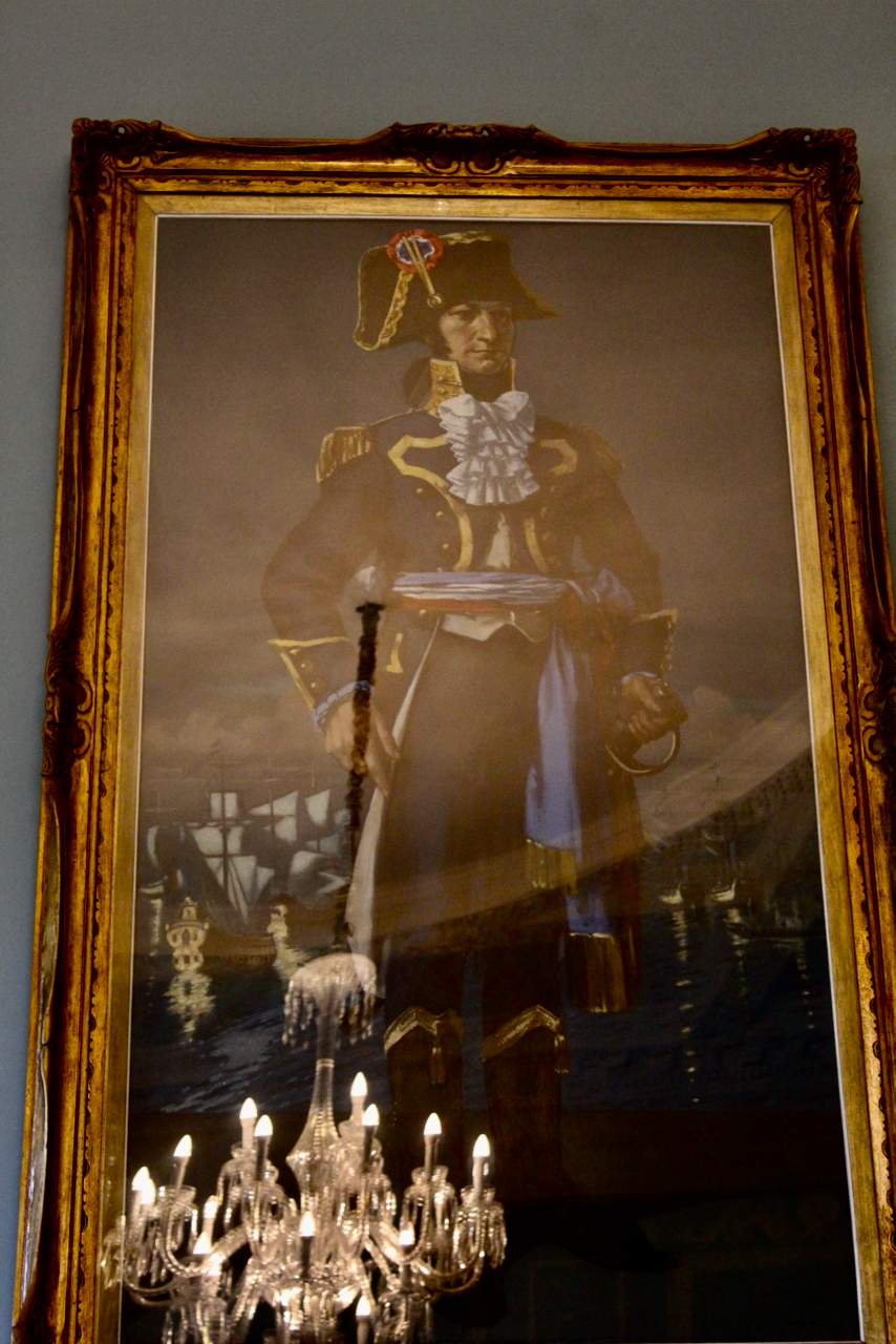 There was another fascinating portrait in one of the beautifully decorated rooms, this time of an Indian military man, who was a servant of an ancestor of Philip’s wife. This ancestor, named Dennehy, worked in India under Queen Victoria, and introduced Victoria to Indian servants – and through him she met her beloved Indian servant, about whom, and their relationship, there was a movie a few years ago, “Victoria and Abdul”! Philip’s wife was in Osbourne, Victoria’s home on the Isle of Wight, and noticed that there is a series of these pictures, matching her own, of Queen Victoria’s other Indian servants. Stephen and I also loved the tv series about young Victoria.
