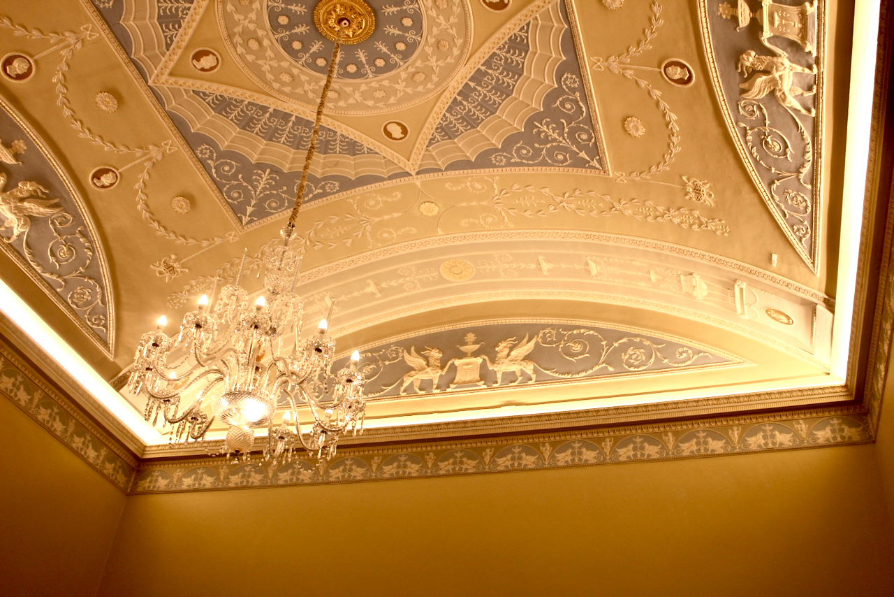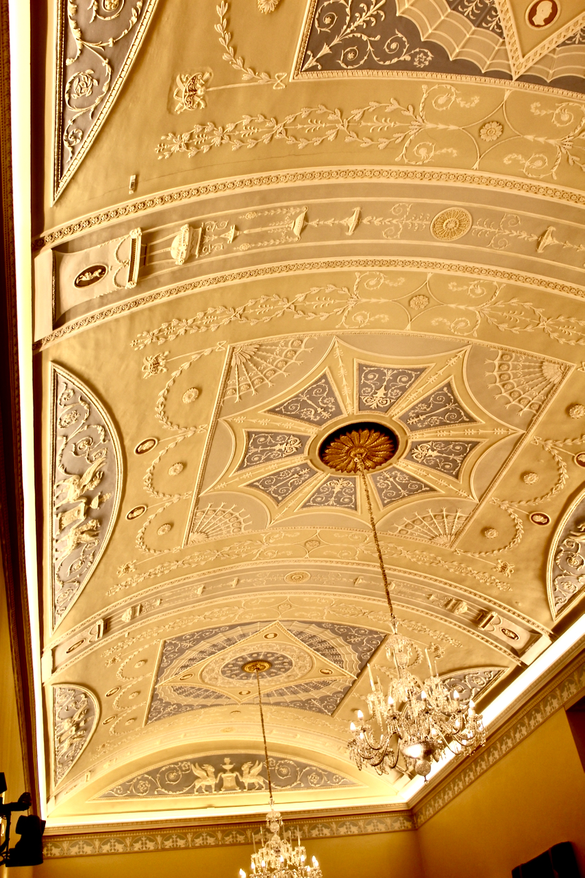 The ceiling as designed by James Wyatt is tripartite. I defer to Christine Casey for a description: