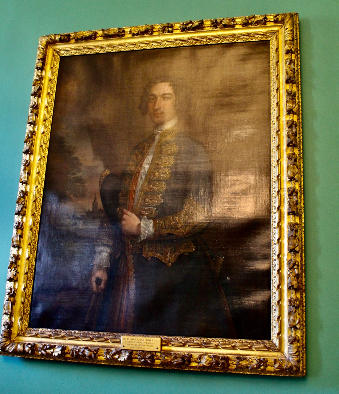 Robert, 19th Earl of Kildare (1675-1744) after Frederick Graves, courtesy of Adam’s auction 15th Oct 2019. Robert FitzGerald, (1675 – 1744) was married to Mary O Brien, daughter of William O’Brien 3rd Earl of Inchiquin. They had 12 children but only 2 survived to majority. They had lived quietly at Kilkea Castle, near Athy, but in 1739 Robert bought back the lease of Carton, in Maynooth, for £8,000. He commissioned Richard Castle, the eminent architect, to reconstruct the existing house. In the pediment over the South front, previously the main entrance, is the coat of arms of Robert FitzGerald and his wife Mary O’Brien. Robert also employed the La Franchini brothers to construct the wonderful ceiling in the Gold Salon. The additions to Carton were not finished when Robert died in 1744 but he left instructions in his will to finish the restoration according to his plans. A monument dedicated to Robert FitzGerald is situated in Christ Church Cathedral, Dublin. (This portrait hung in Carton until 1949 when the Fitzgerald family sold the estate. It hung in Kilkea Castle until 1960. It was in the FitzGerald family collection in Oxfordshire until 2013.)