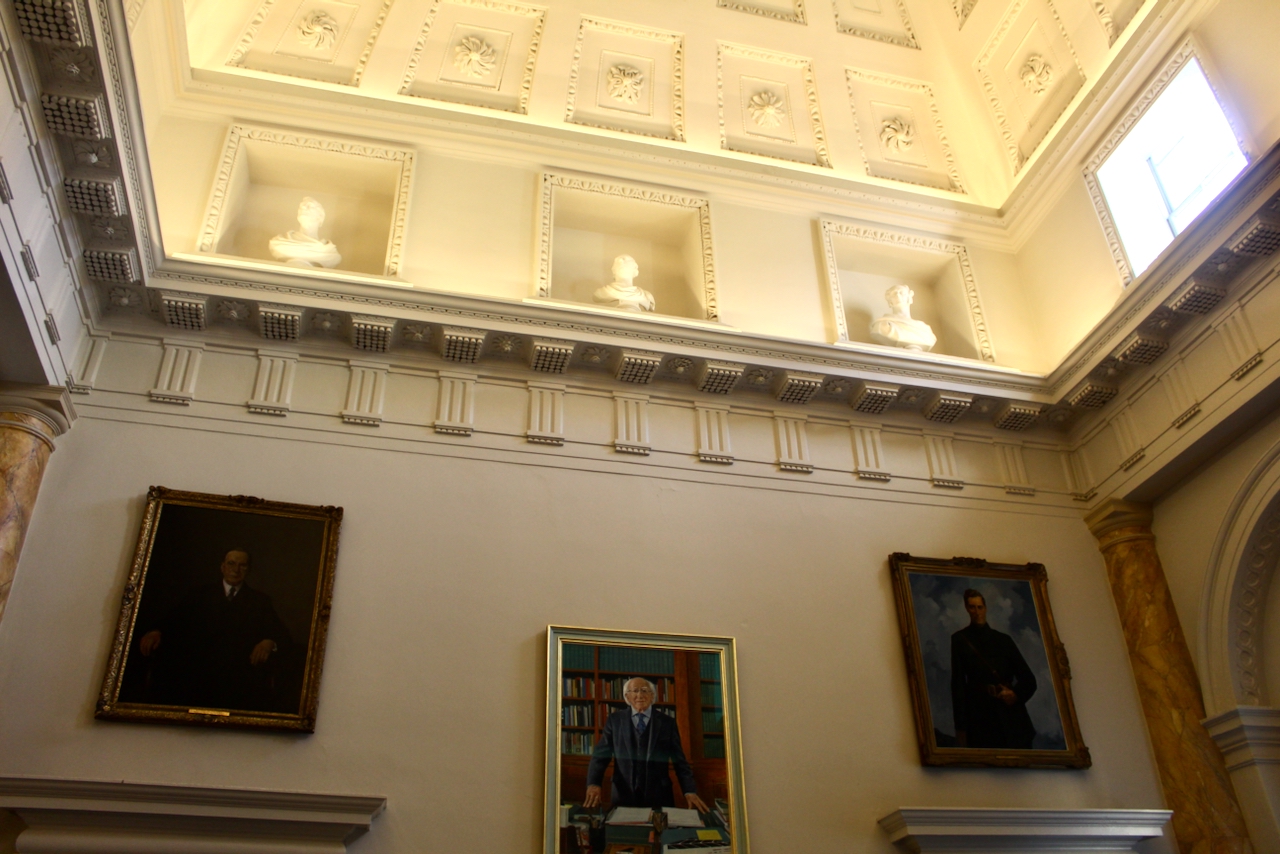 It is the double height that reminds me of the great hall in Castletown, although Castletown has a gallery and Leinster house does not. The niches remind me of the similar front hall in Gloster house in County Offaly, which although a private family home, in 2025 is a Section 482 property which you can visit on particular days.