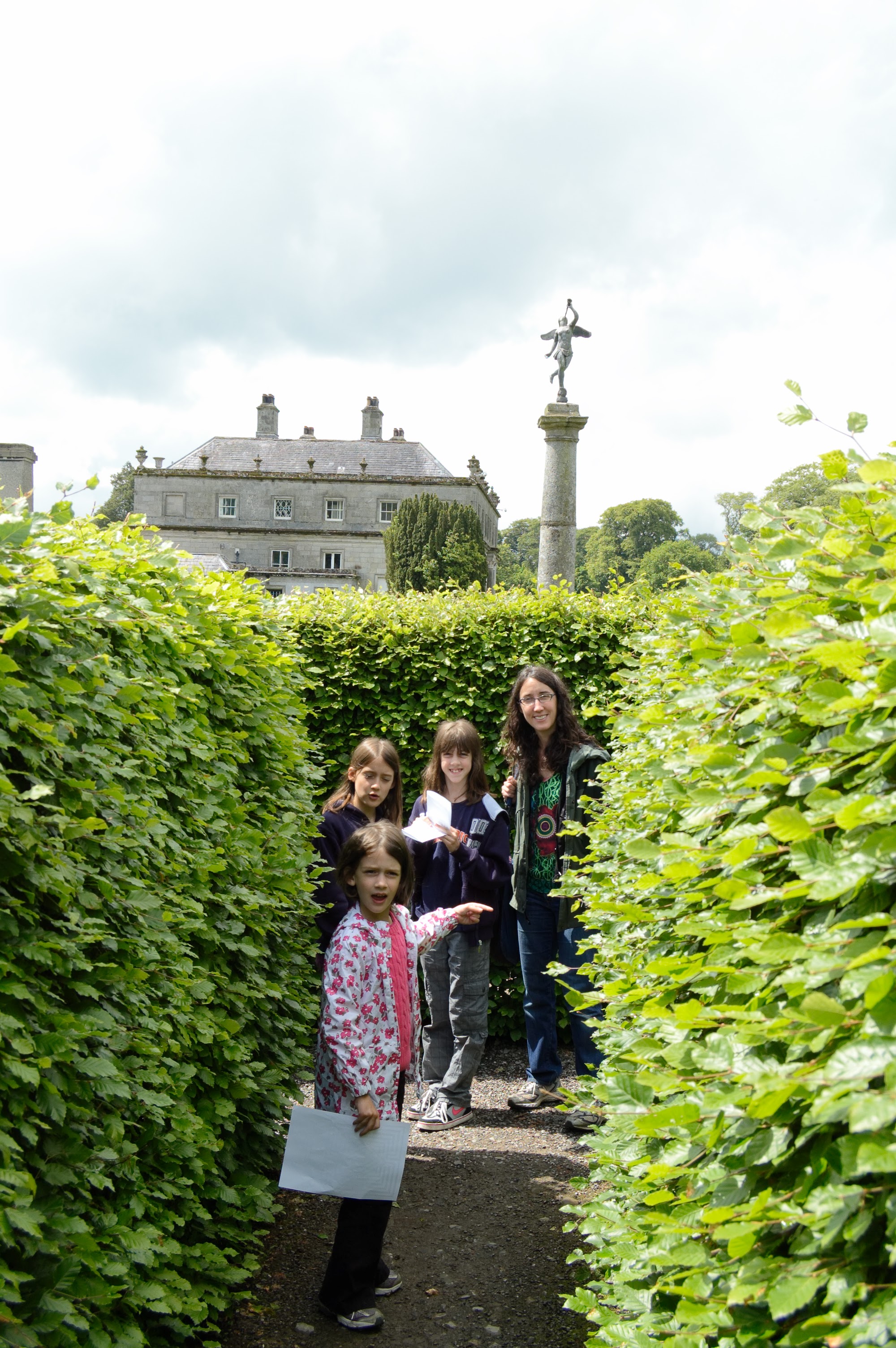 Outside near the former riding arena, hedges have been shaped into a maze.