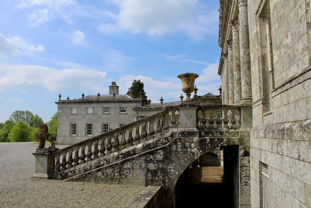 The lions at the foot of the entrance steps carry the heraldic shield of the Milltowns, which must have been put in place after 1763 when Joseph Leeson was promoted to be Earl of Milltown. Photo by Jeremy Hylton.Photograph by Jeremy Hylton of central block.