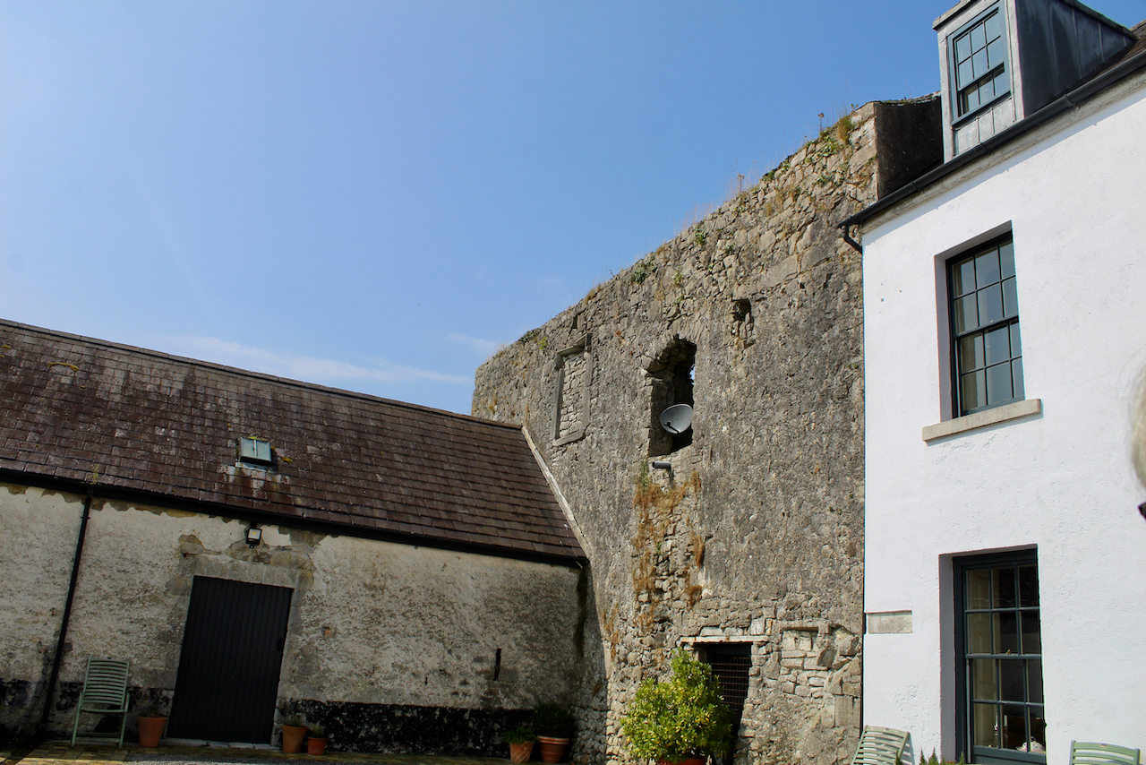 Maurice Craig points out in his The Architecture of Ireland from the earliest times to 1880 that there are a group of similar buildings, built over a period of fifty years or more: Rathfarnham; Kanturk for MacDonagh MacCarthy, built before 1609; Portumna for the Earl of Clanrickarde, before 1618; Manorhamilton for Sir Frederick Hamilton, probably around 1634; Raphoe, for Bishop John Leslie (the “Fighting Bishop” – see my entry on Castle Leslie https://irishhistorichouses.com/2020/08/07/castle-leslie-glaslough-county-monaghan/) in 1636, and Burncourt for Sir Richard Everard before 1650. Manorhamilton is a section 482 ruin (see my entry https://irishhistorichouses.com/2025/02/20/manorhamilton-castle-castle-st-manorhamilton-co-leitrim/) and we visited Portumna in County Galway – see my entry https://irishhistorichouses.com/2022/02/14/office-of-public-works-properties-connacht/. The buildings resemble a fort, such as Mountjoy Fort in County Tyrone built 1600-1605. Killenure, County Tipperary, is similar but has cylindrical flankers, Craig tells us. This last was unroofed by 1793, and it is now (2025) a Section 482 property which I must visit!