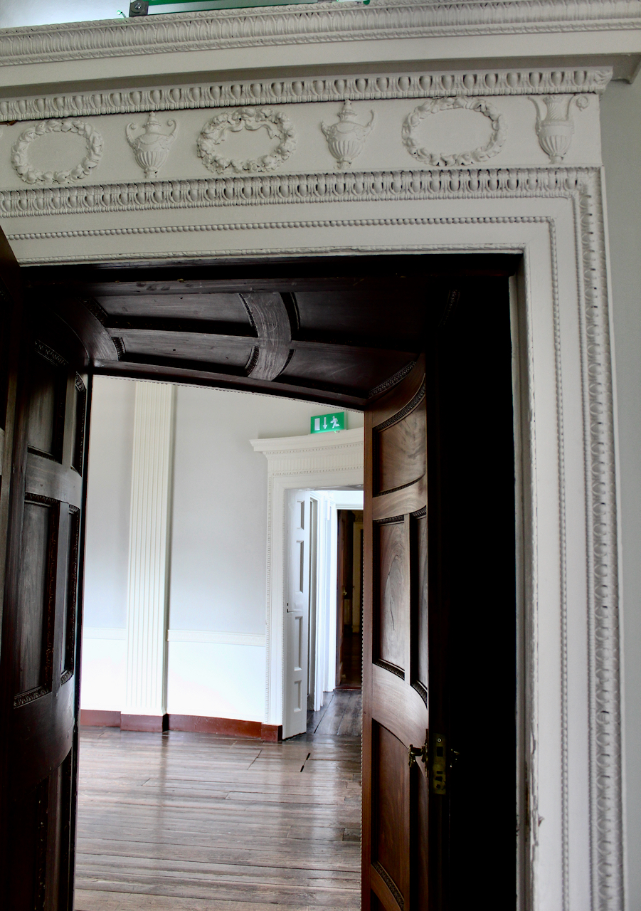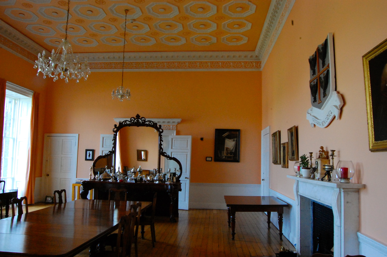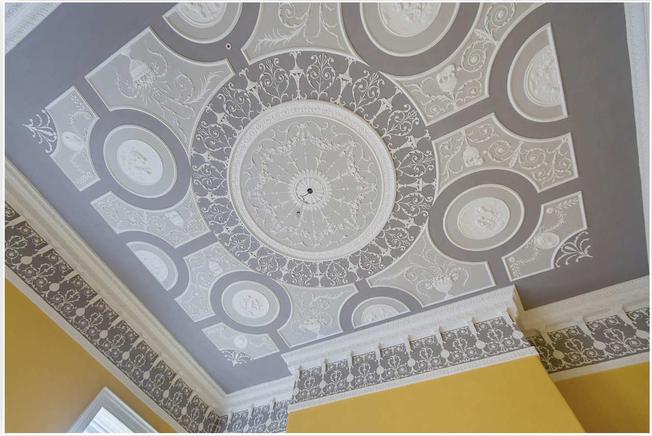 One of the more outstanding features of the house is the stucco-work of Adamesque style popularised by Robert and James Adam. This can be seen in the ornamental surrounds, wherein pictures are framed in plaster rather than oil.