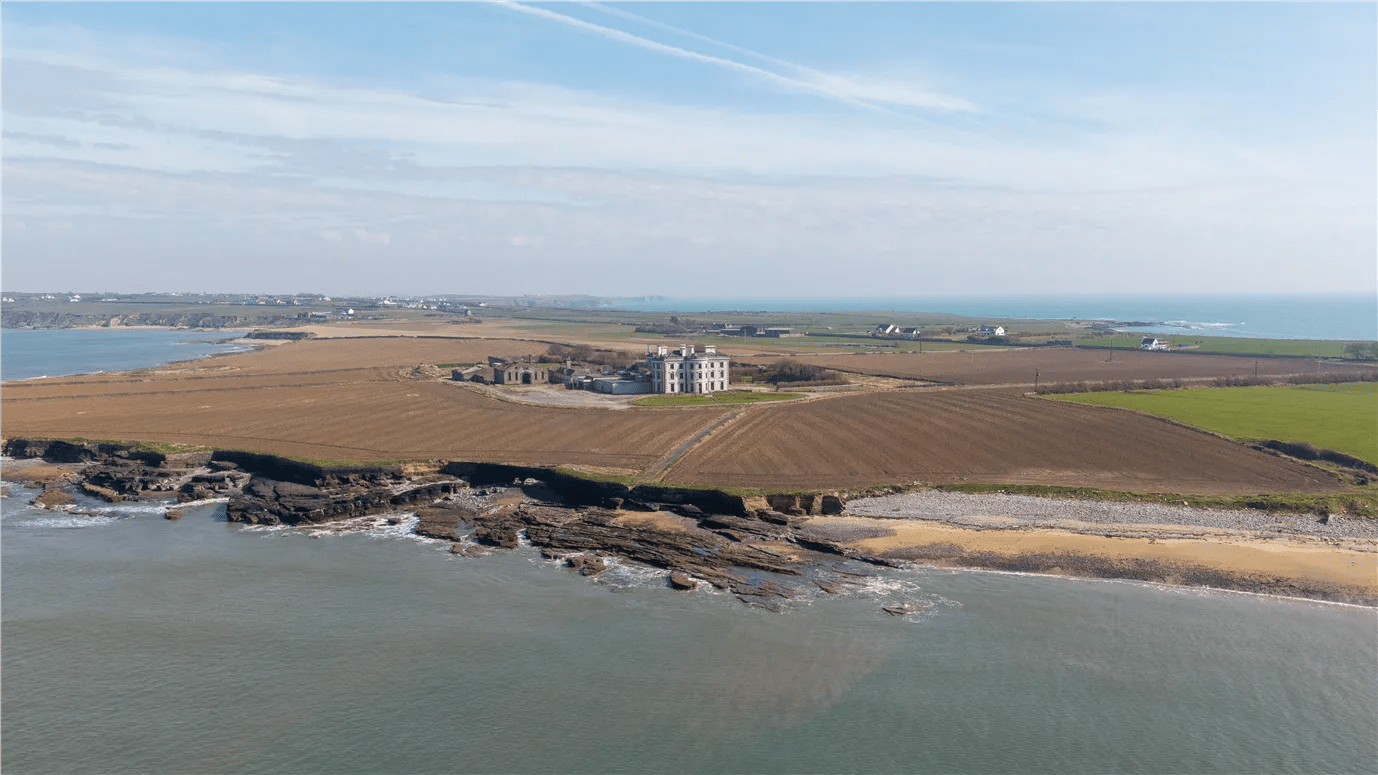 Loftus Hall, County Wexford, for sale April 2025 courtesy Colliers.Formerly named Redmond Hall, it is a three-storey mansion built in 1871, incorporating parts of a previous house here, which was late 17th century or early C18. [3]