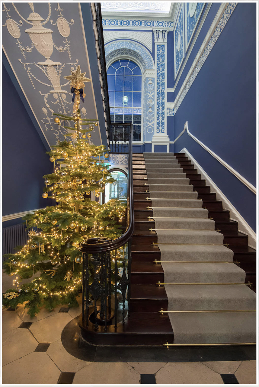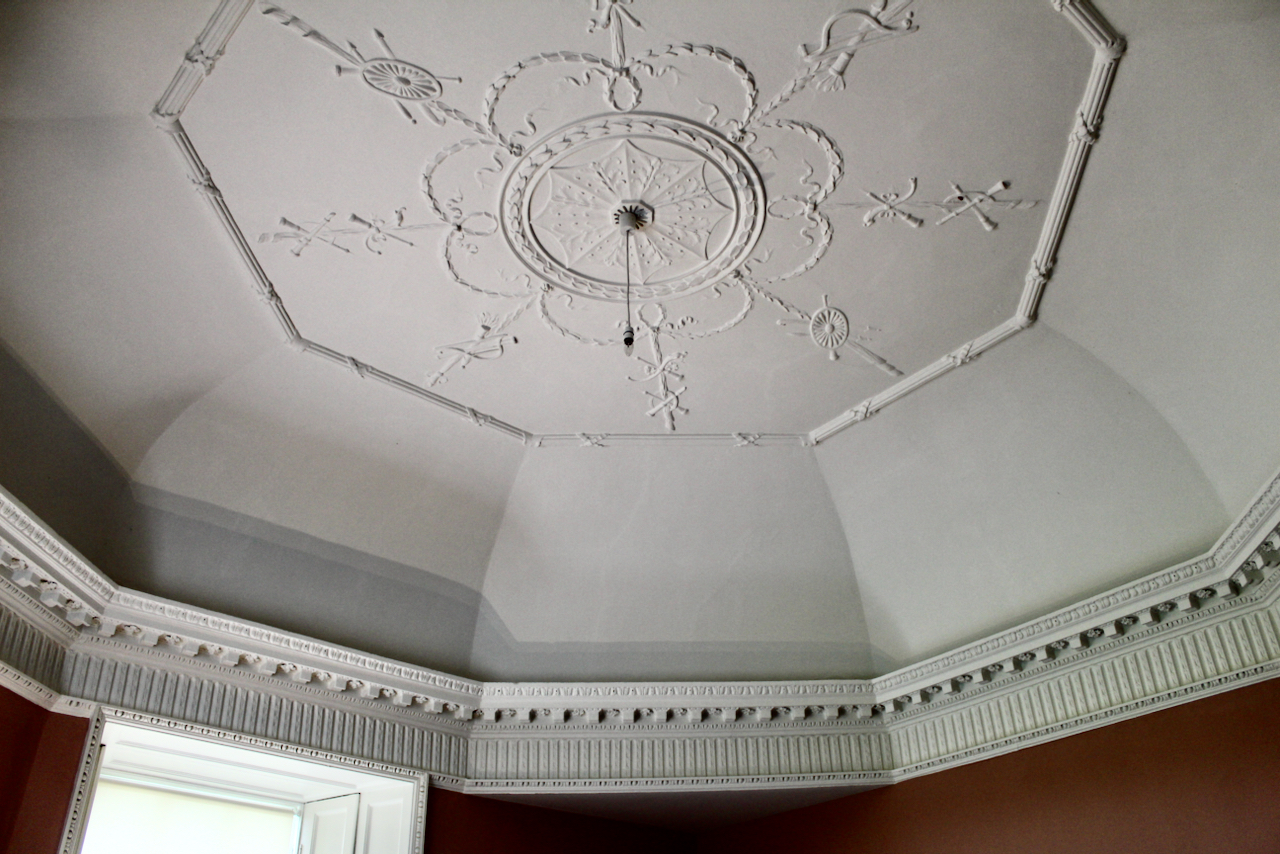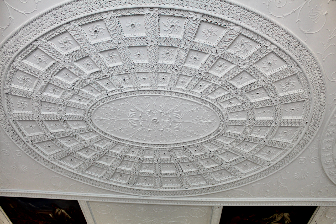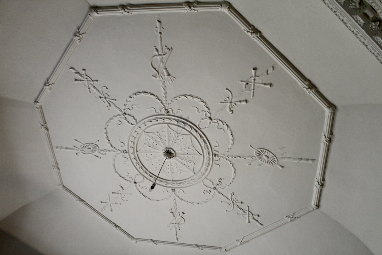 As well as the ante room and ballroom and the entrance hall on the first floor, Chambers was responsible for the small drawing room ceiling, back staircase lobby, and the octagonal room in one of the towers.