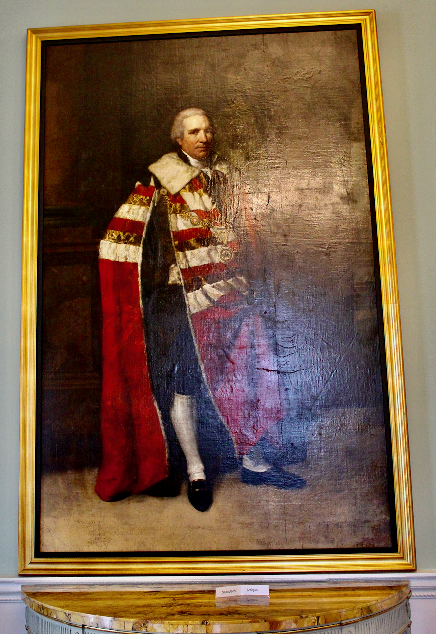 Charles Tottenham Loftus, Marquis of Ely by Hugh Douglas Hamilton. Charles was the nephew of Henry Loftus Earl of Ely and inherited Rathfarnham Castle and the demesne on his death in 1783. The painting shows Charles in the robes of the Irish House of Lords. He is also wearing a chain indicating his membership of the prestigious Order of St Patrick. He was elevated to a Marquis, given a baronetcy in England as well as £45,000 in return for his votes in favour of the Act of Union. Hugh Douglas Hamilton (1740-1808) was born and grew up in Dublin and attended the Dublin Society’s Drawing Schools. He had a long and successful career as an artist and worked in London and Rome as well as Dublin. He is perhaps best known for his work in pastels and left an extensive series of portraits of leading figures in Irish society.